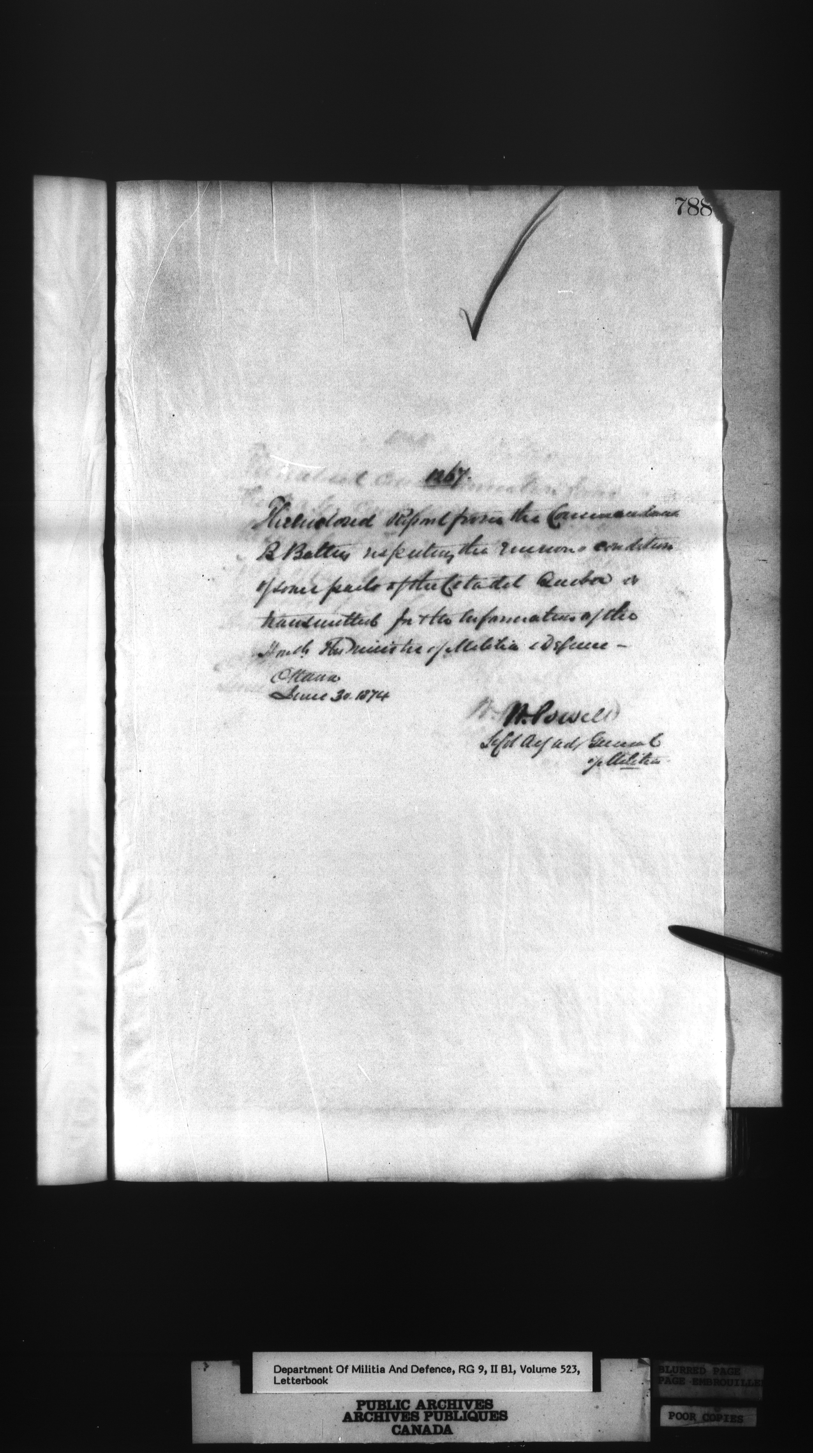 Correspondence of the General Officer Commanding (GOC) of the Canadian Militia and his predecessor, the Adjutant General - 290