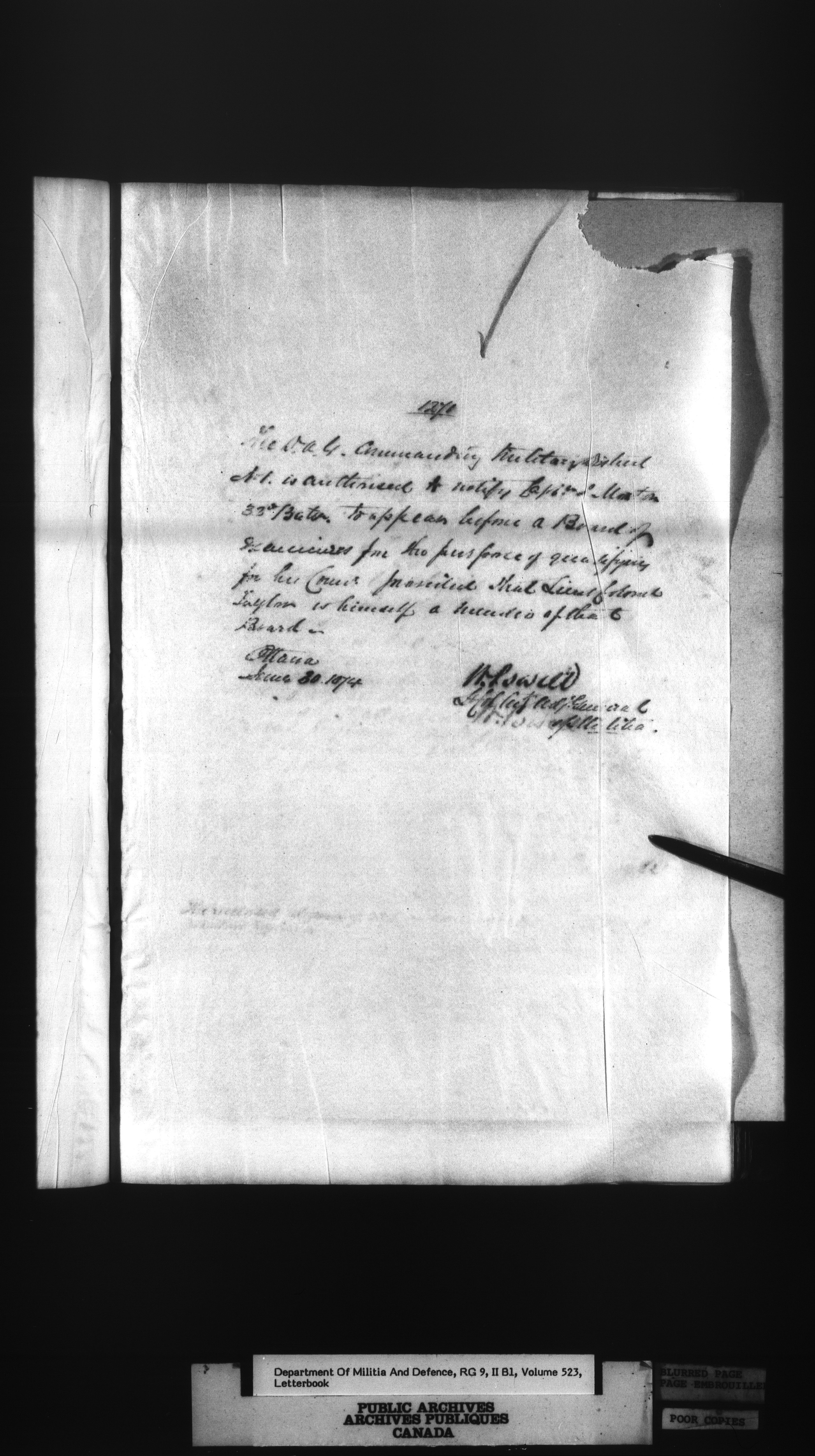 Correspondence of the General Officer Commanding (GOC) of the Canadian Militia and his predecessor, the Adjutant General - 290