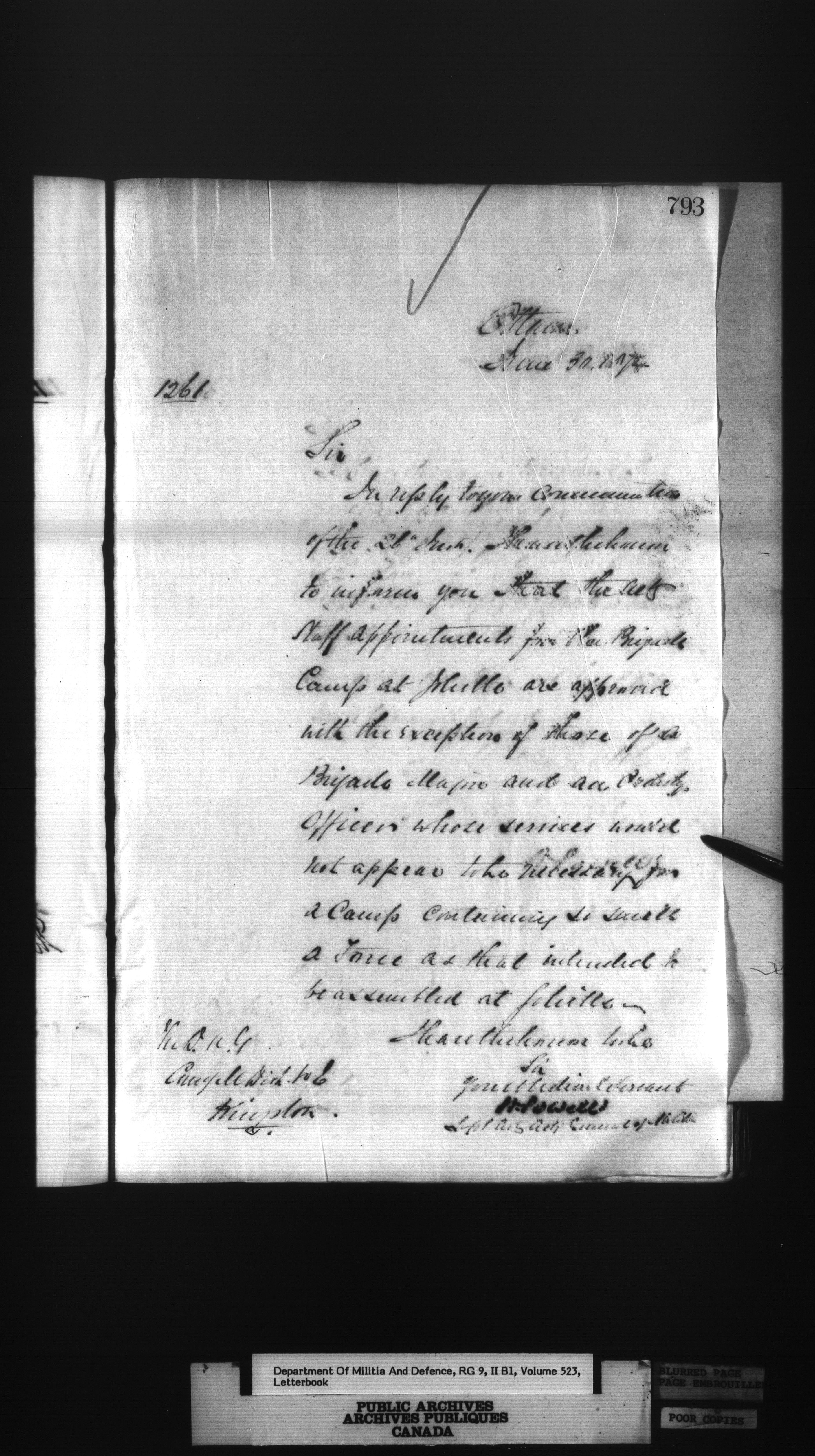 Correspondence of the General Officer Commanding (GOC) of the Canadian Militia and his predecessor, the Adjutant General - 290
