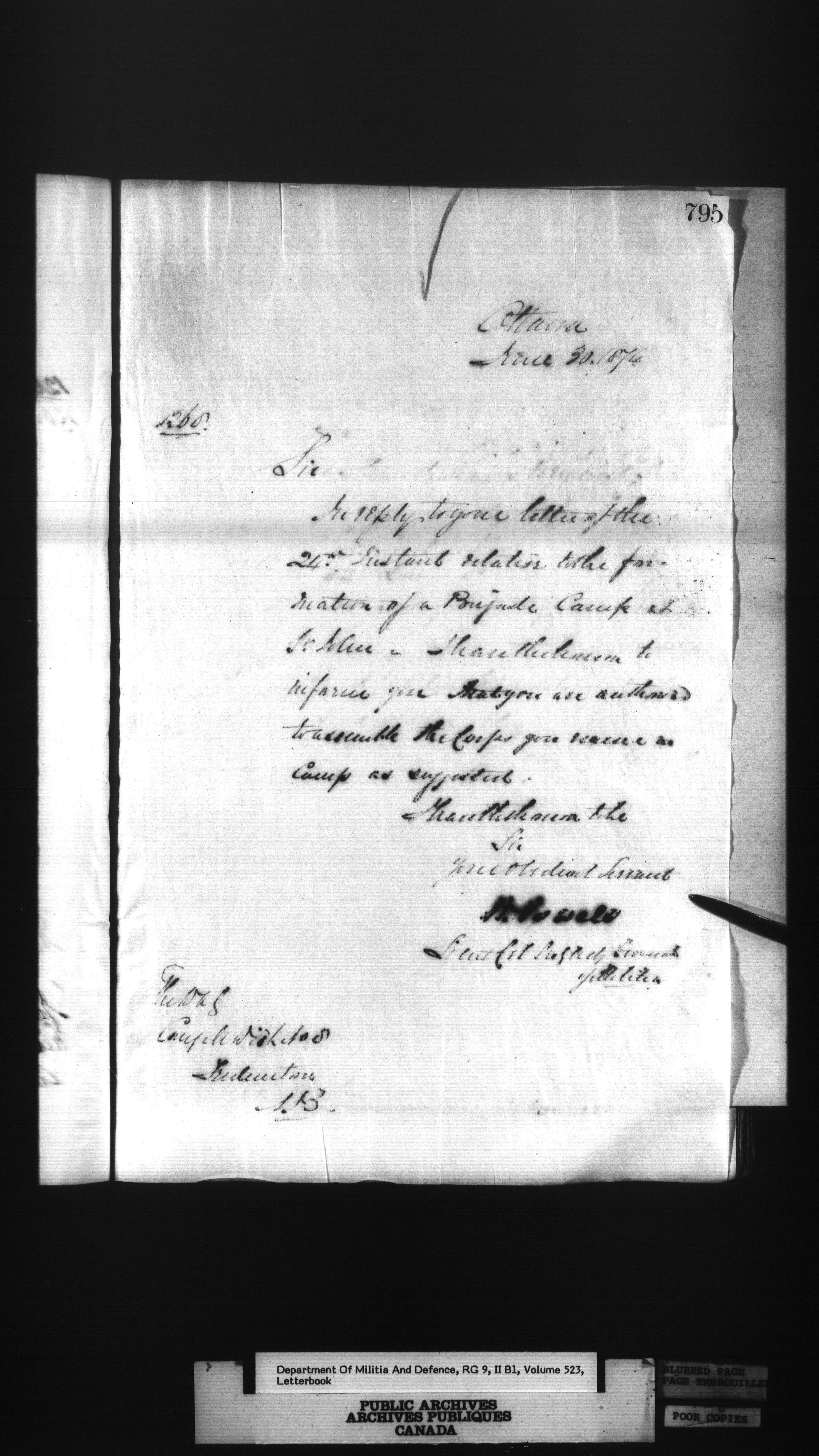 Correspondence of the General Officer Commanding (GOC) of the Canadian Militia and his predecessor, the Adjutant General - 290