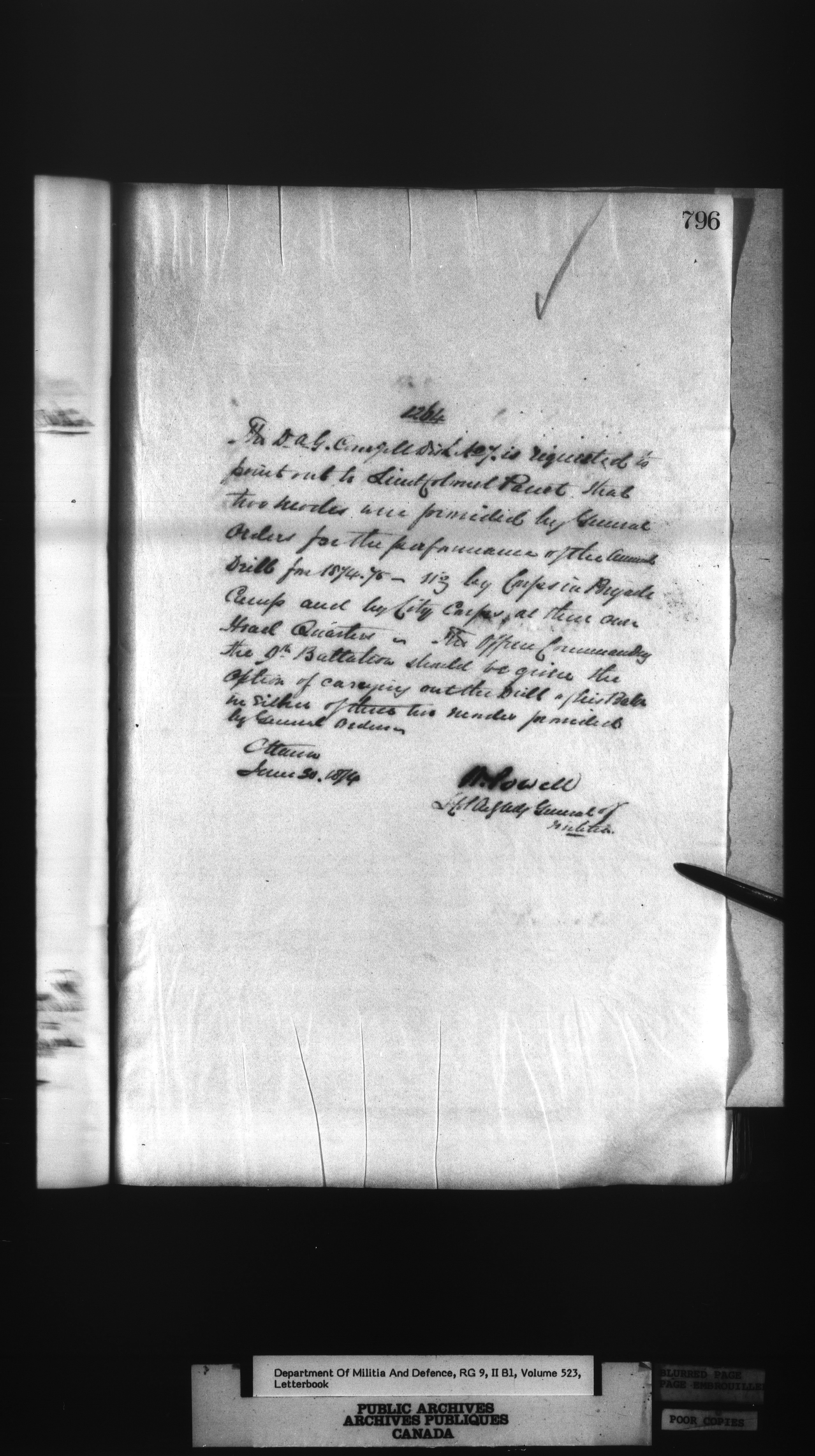 Correspondence of the General Officer Commanding (GOC) of the Canadian Militia and his predecessor, the Adjutant General - 290