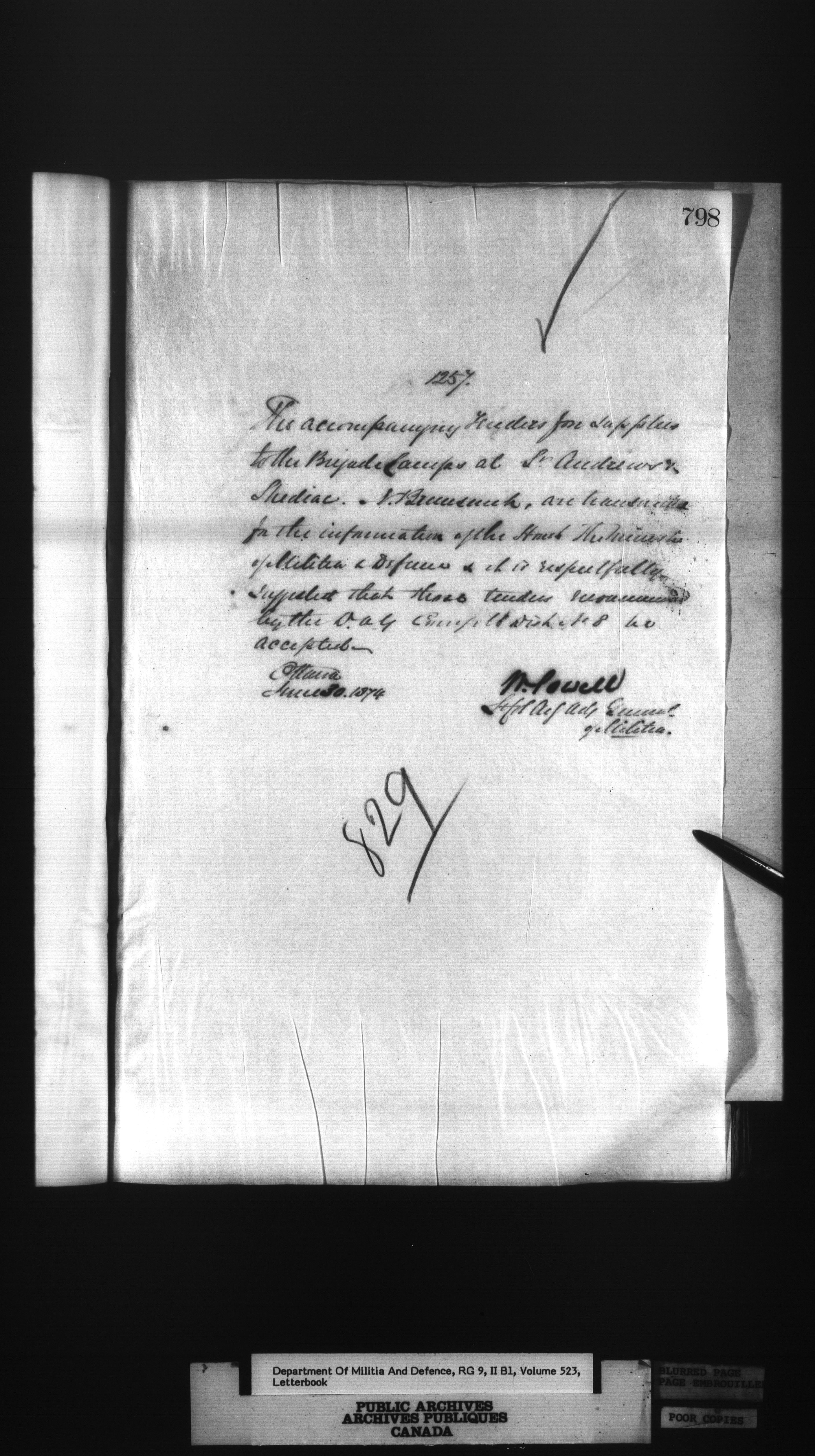 Correspondence of the General Officer Commanding (GOC) of the Canadian Militia and his predecessor, the Adjutant General - 290