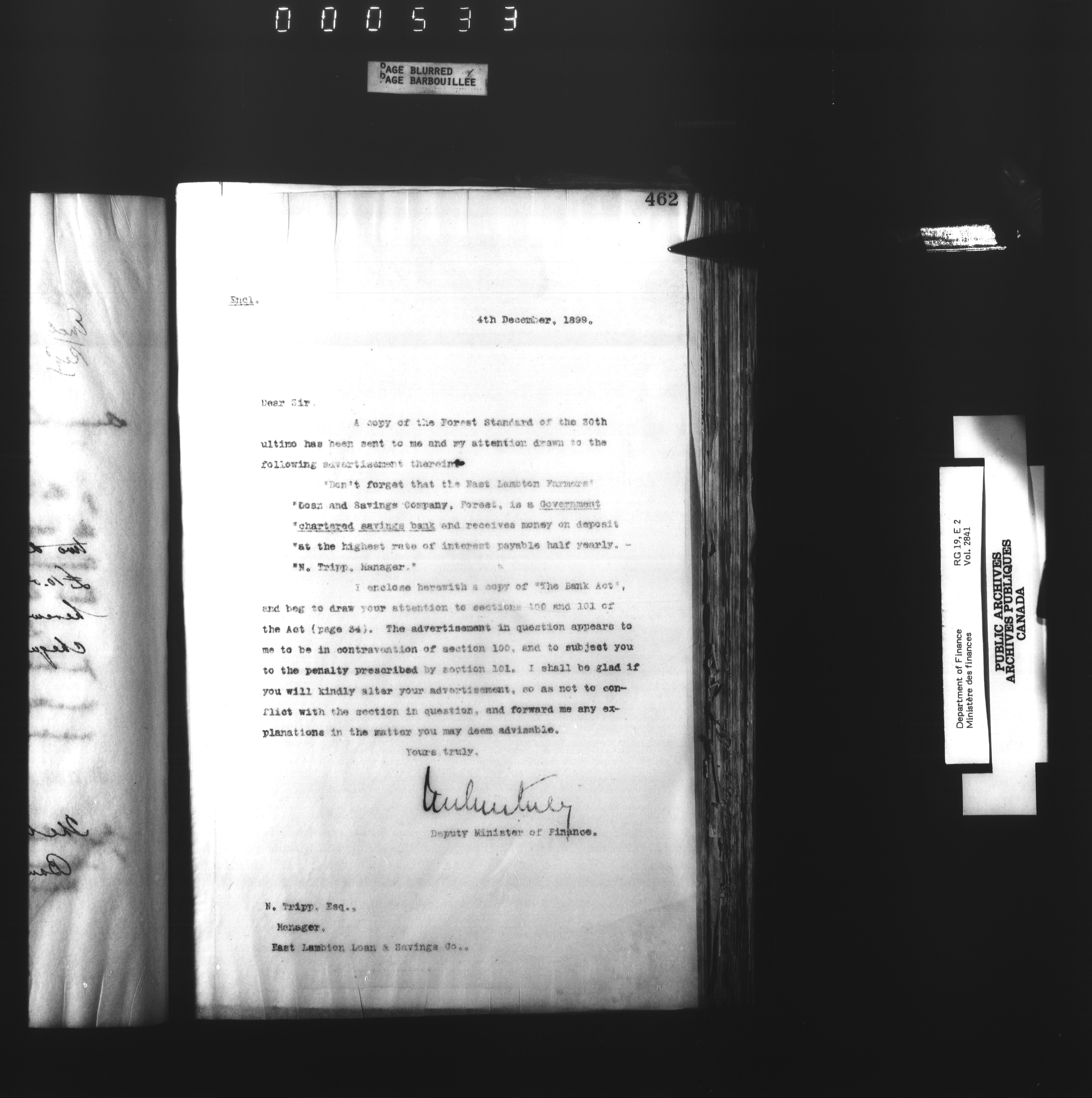 Outgoing correspondence of the office of the Deputy-Inspector General and Deputy Minister of Finance - 2906