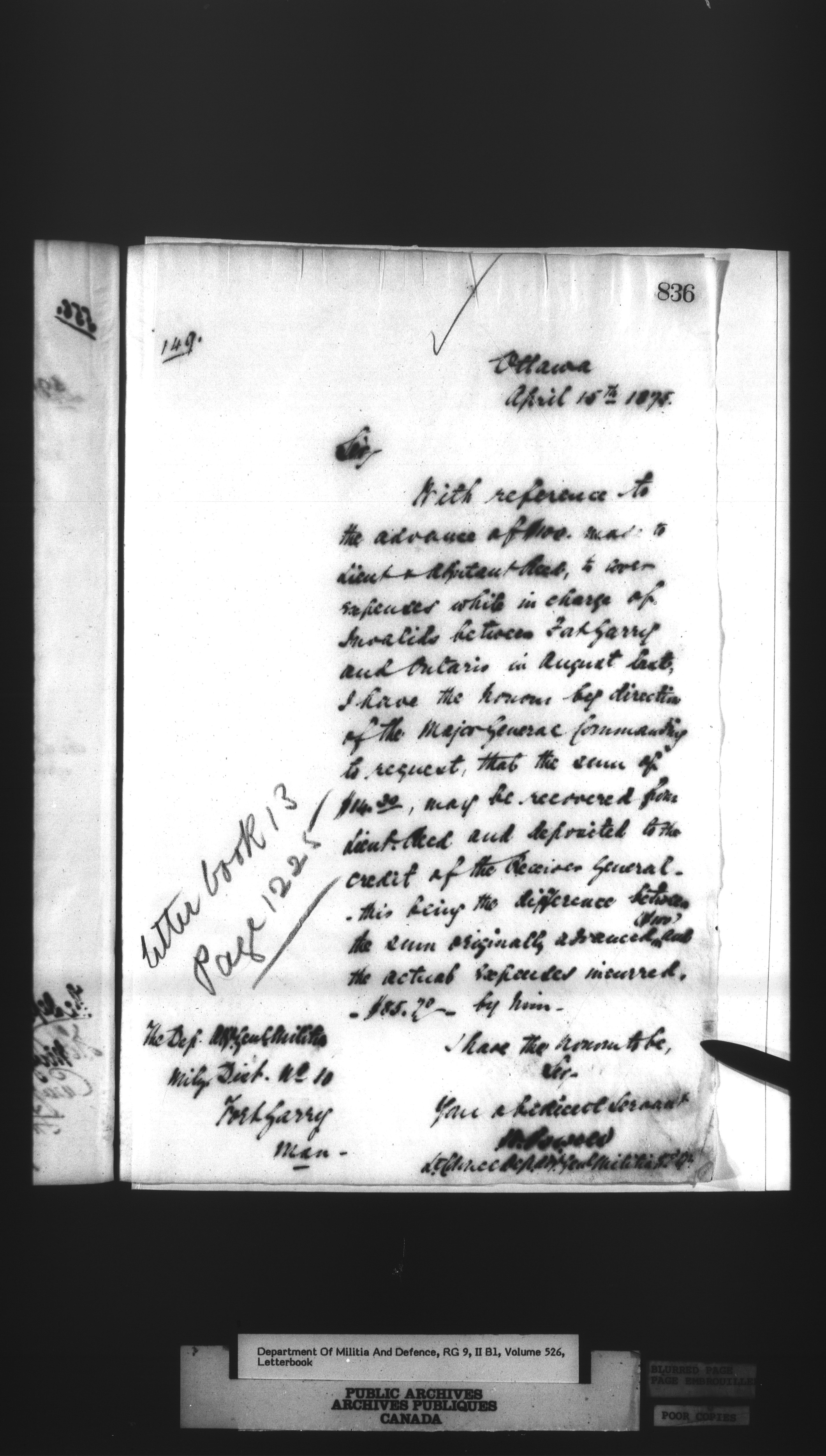 Correspondence of the General Officer Commanding (GOC) of the Canadian Militia and his predecessor, the Adjutant General - 292