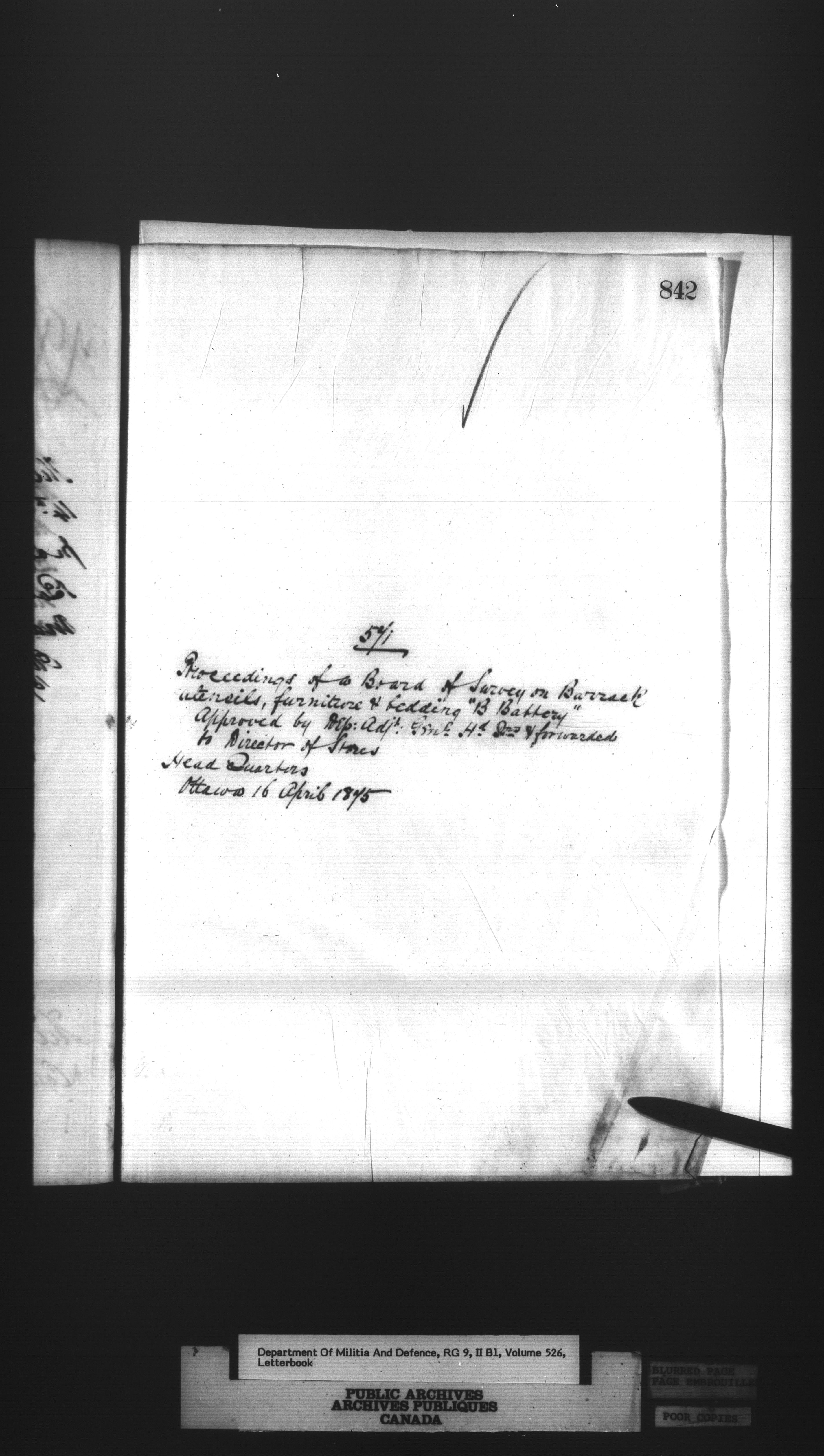Correspondence of the General Officer Commanding (GOC) of the Canadian Militia and his predecessor, the Adjutant General - 292