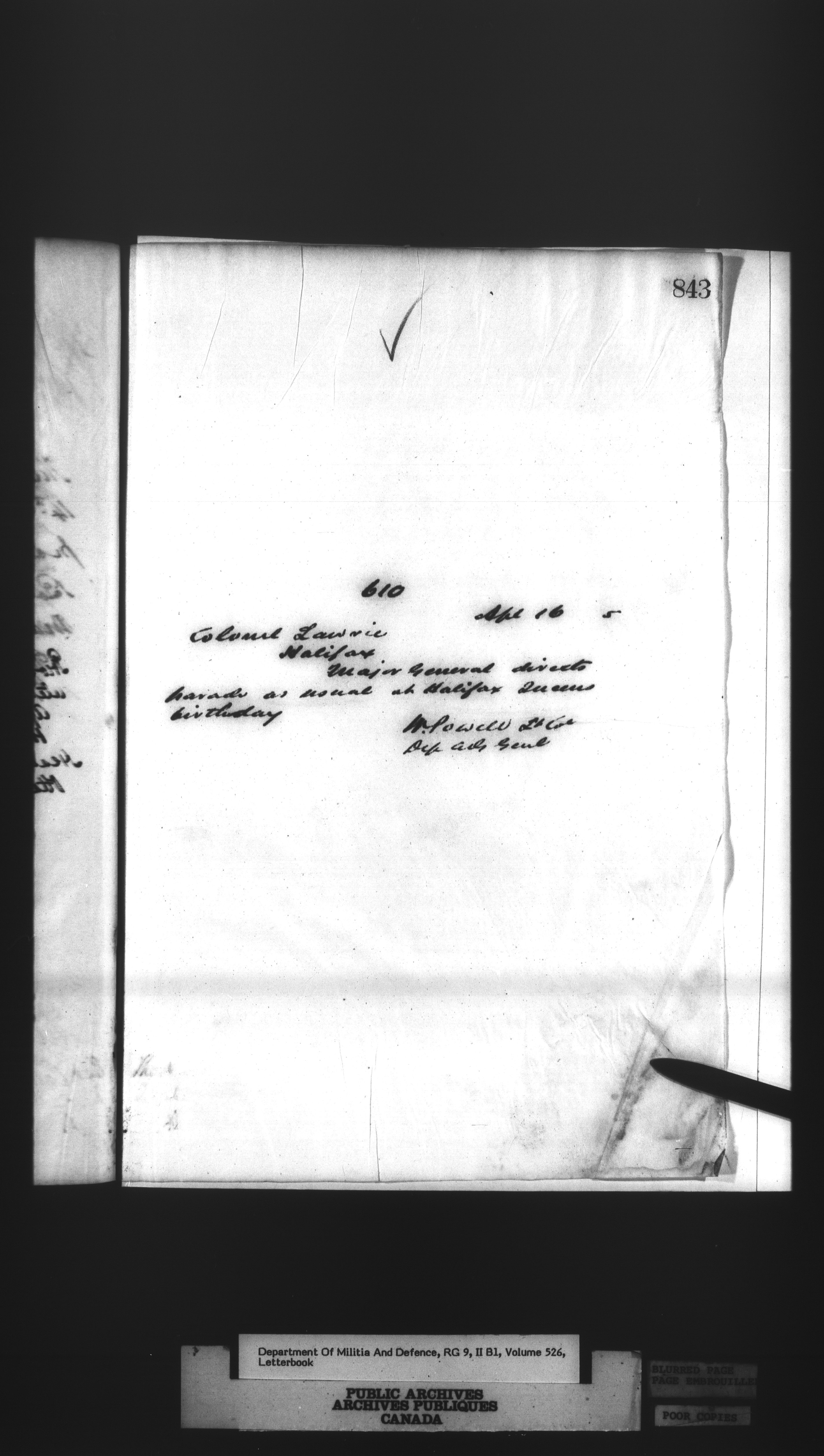 Correspondence of the General Officer Commanding (GOC) of the Canadian Militia and his predecessor, the Adjutant General - 292