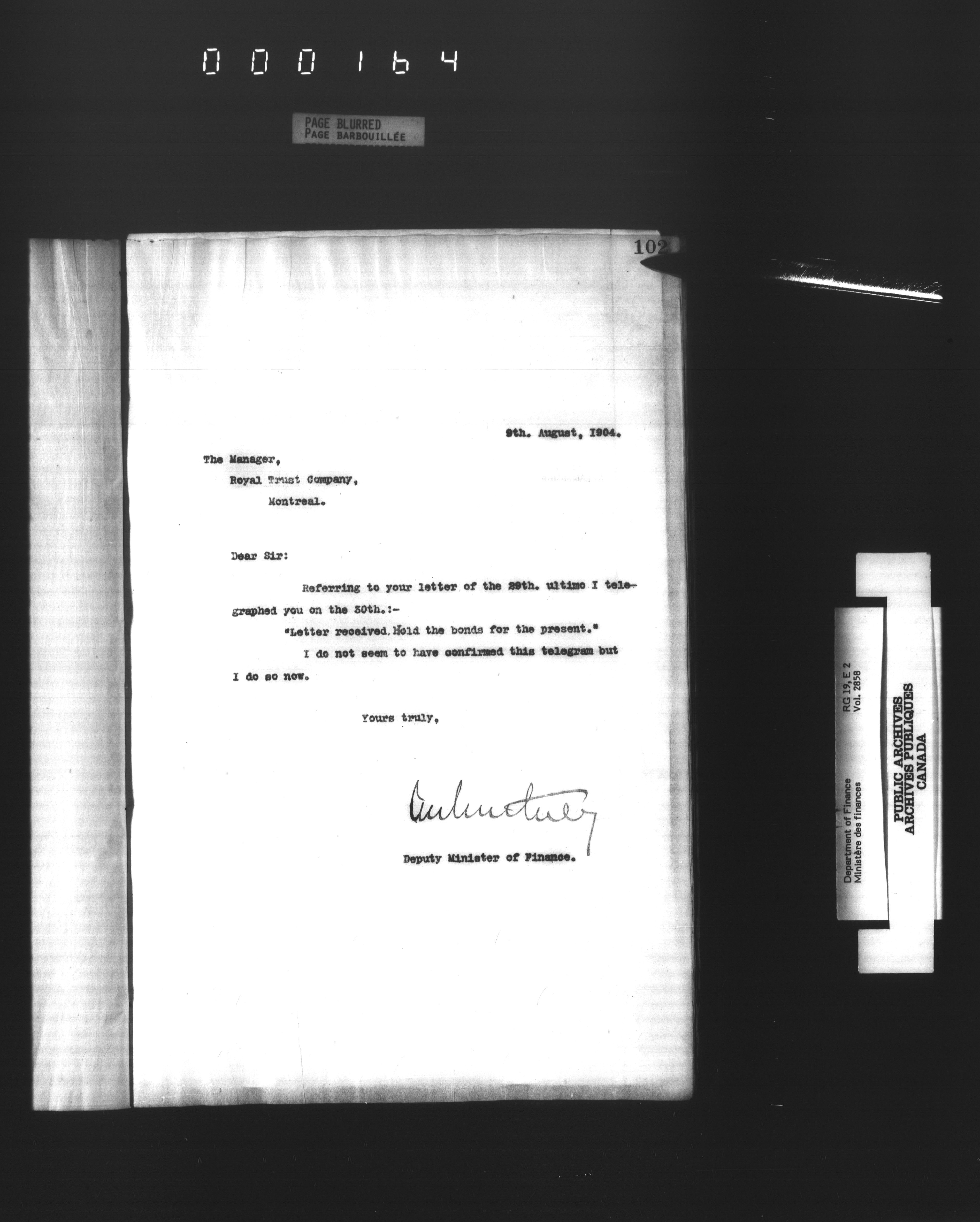 Office of the Deputy Minister of Finance : T-2923
