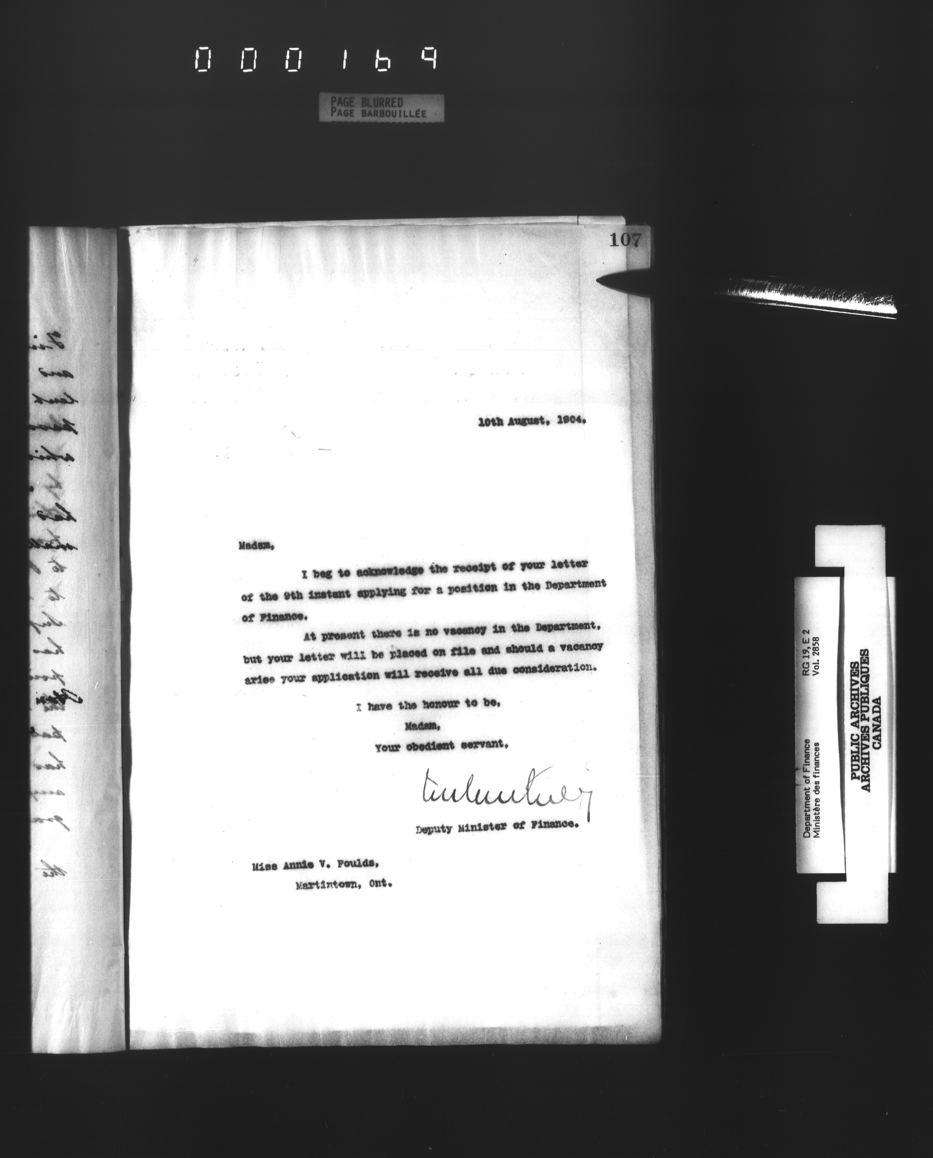 Office of the Deputy Minister of Finance : T-2923