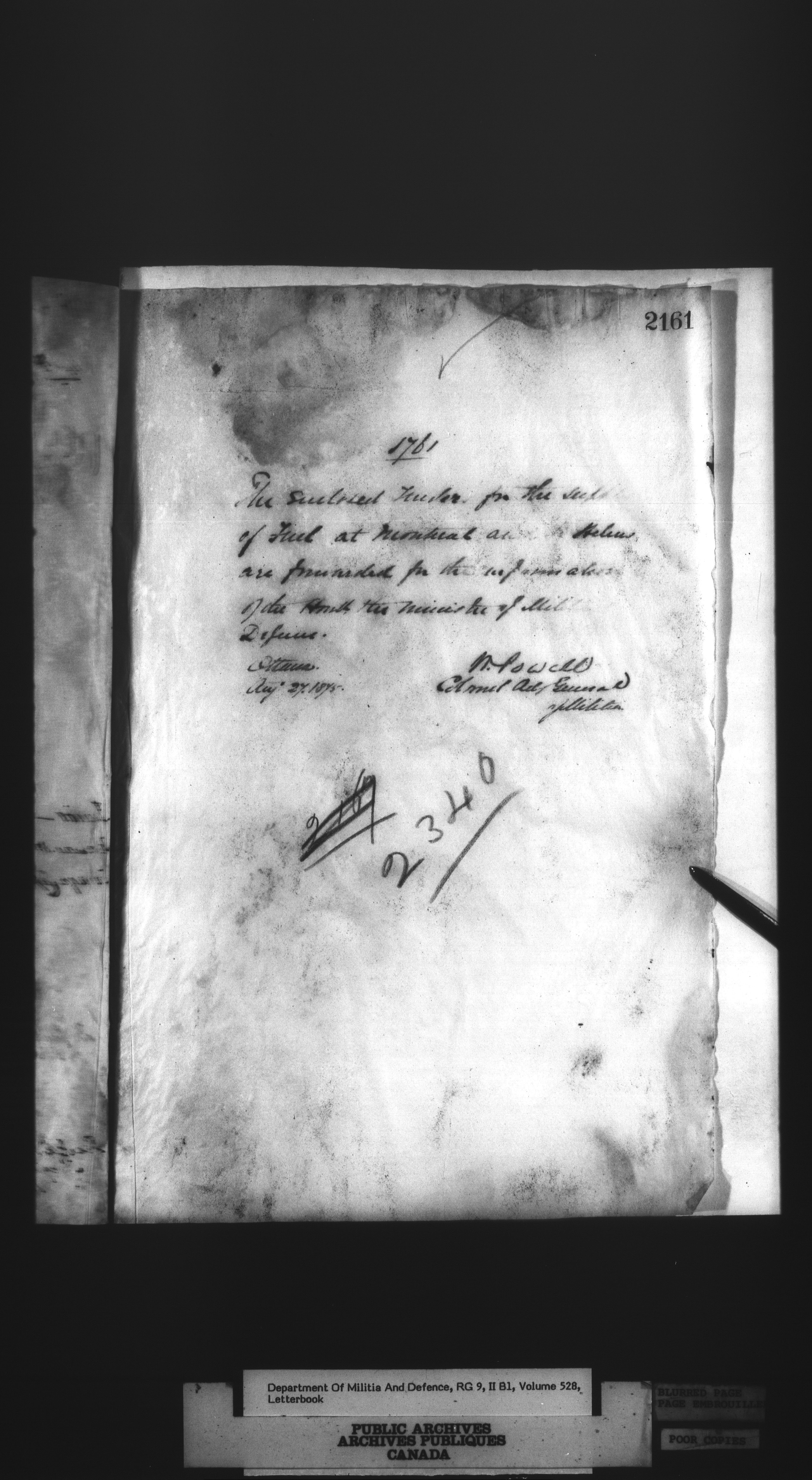 Correspondence of the General Officer Commanding (GOC) of the Canadian Militia and his predecessor, the Adjutant General - 293