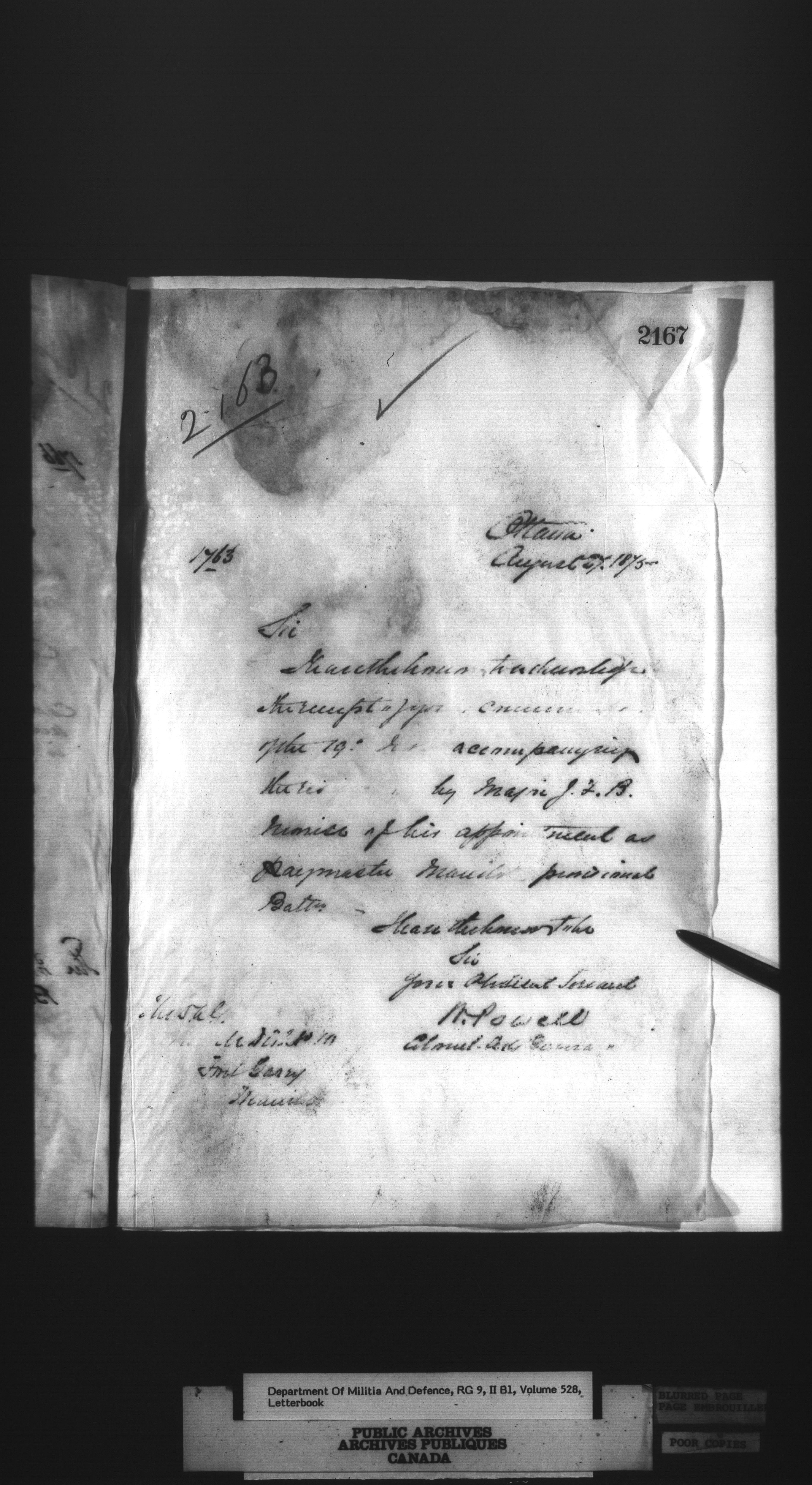 Correspondence of the General Officer Commanding (GOC) of the Canadian Militia and his predecessor, the Adjutant General - 293