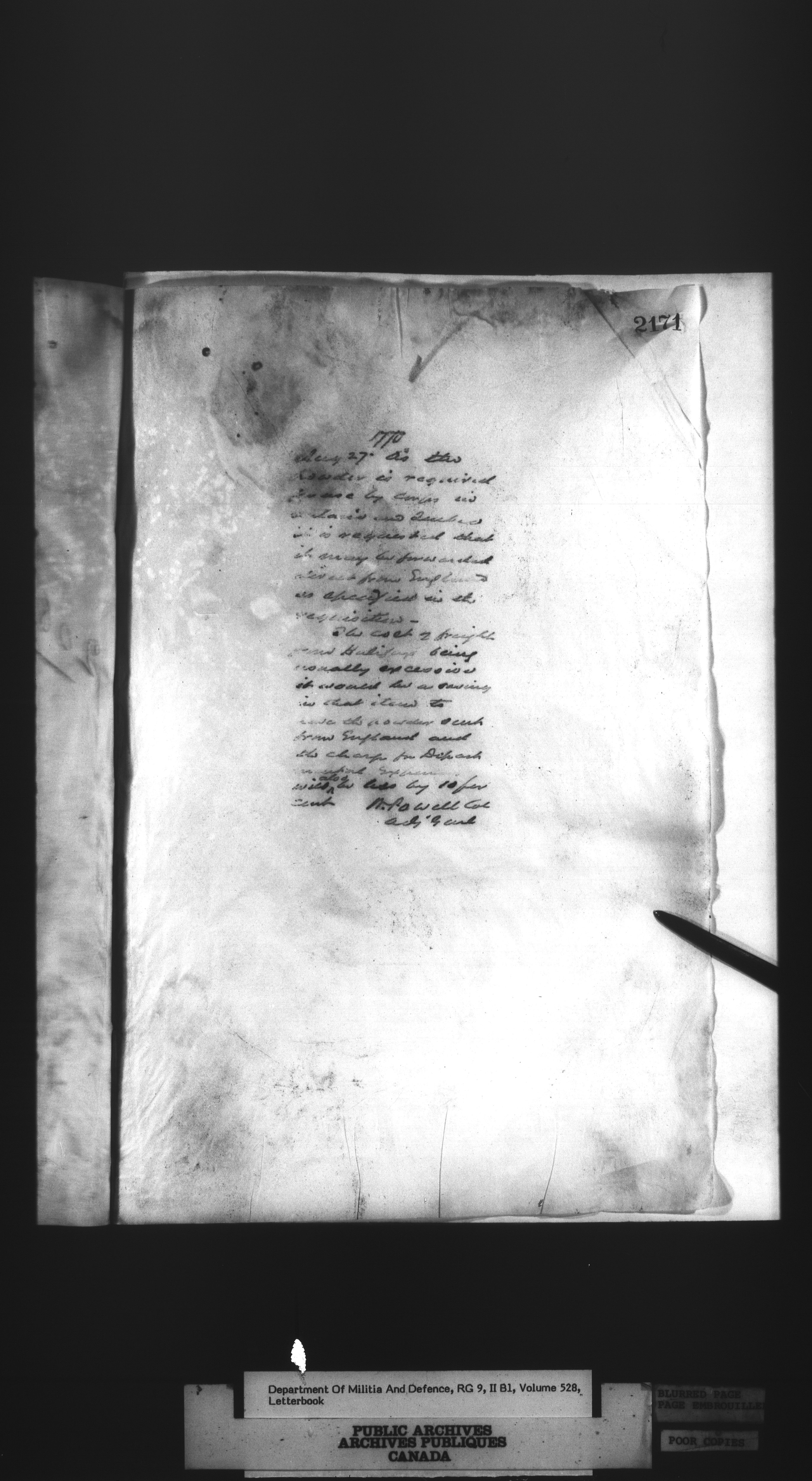 Correspondence of the General Officer Commanding (GOC) of the Canadian Militia and his predecessor, the Adjutant General - 293