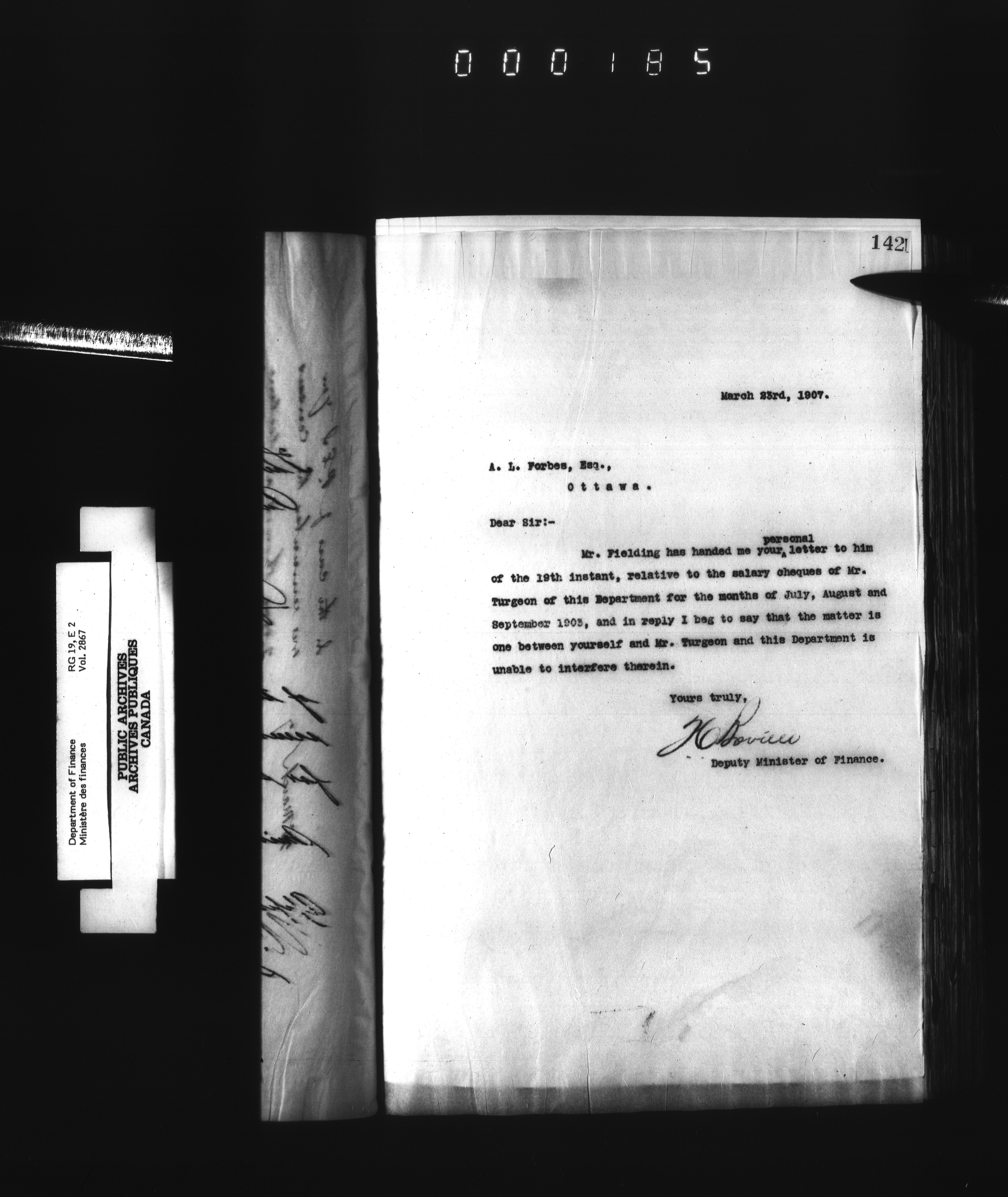 Outgoing correspondence of the office of the Deputy-Inspector General and Deputy Minister of Finance - 2931