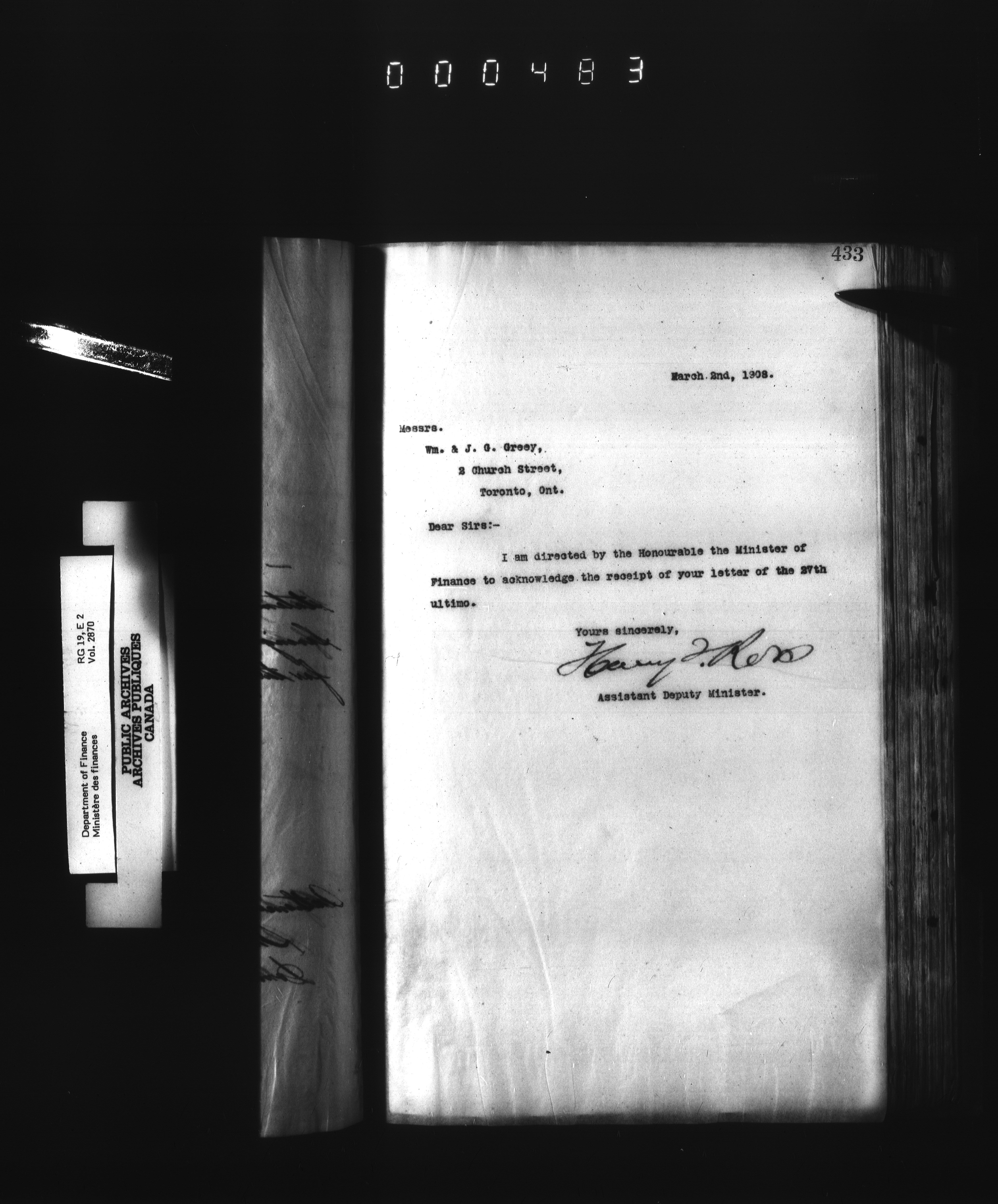Outgoing correspondence of the office of the Deputy-Inspector General and Deputy Minister of Finance - 2934