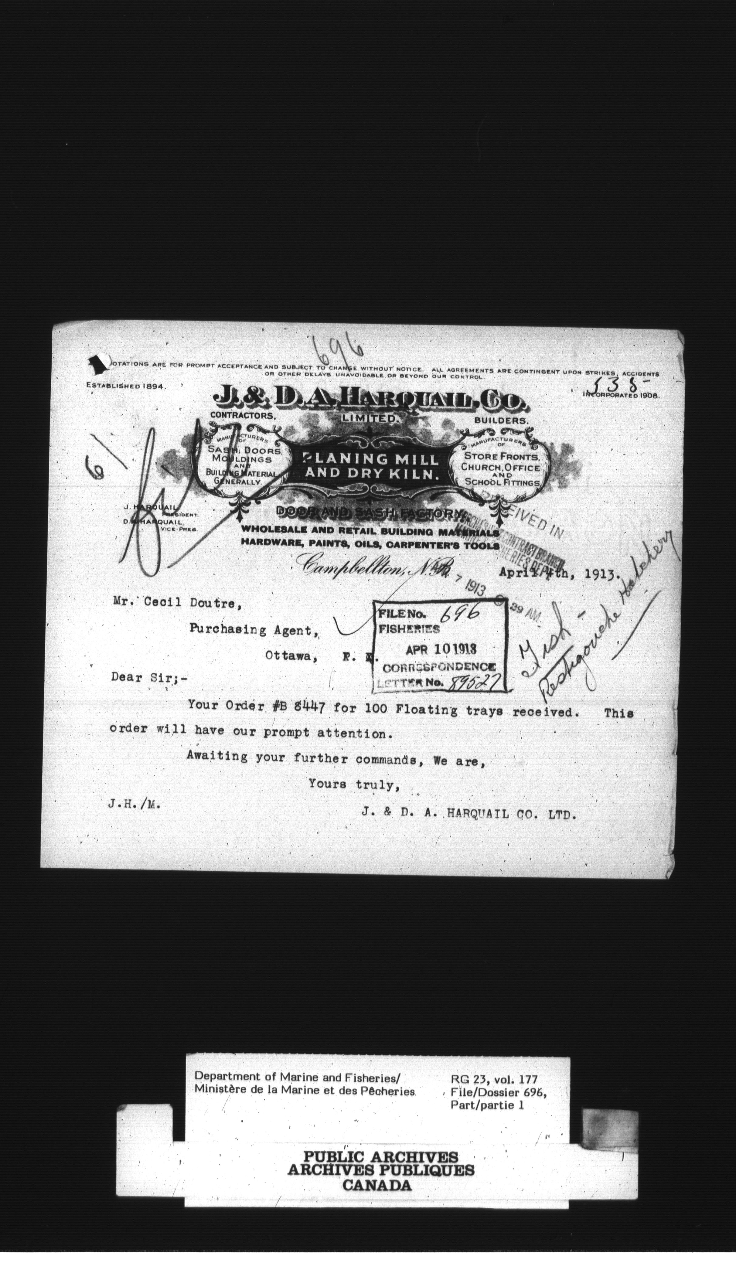 Fisheries Branch Registry files - 2944