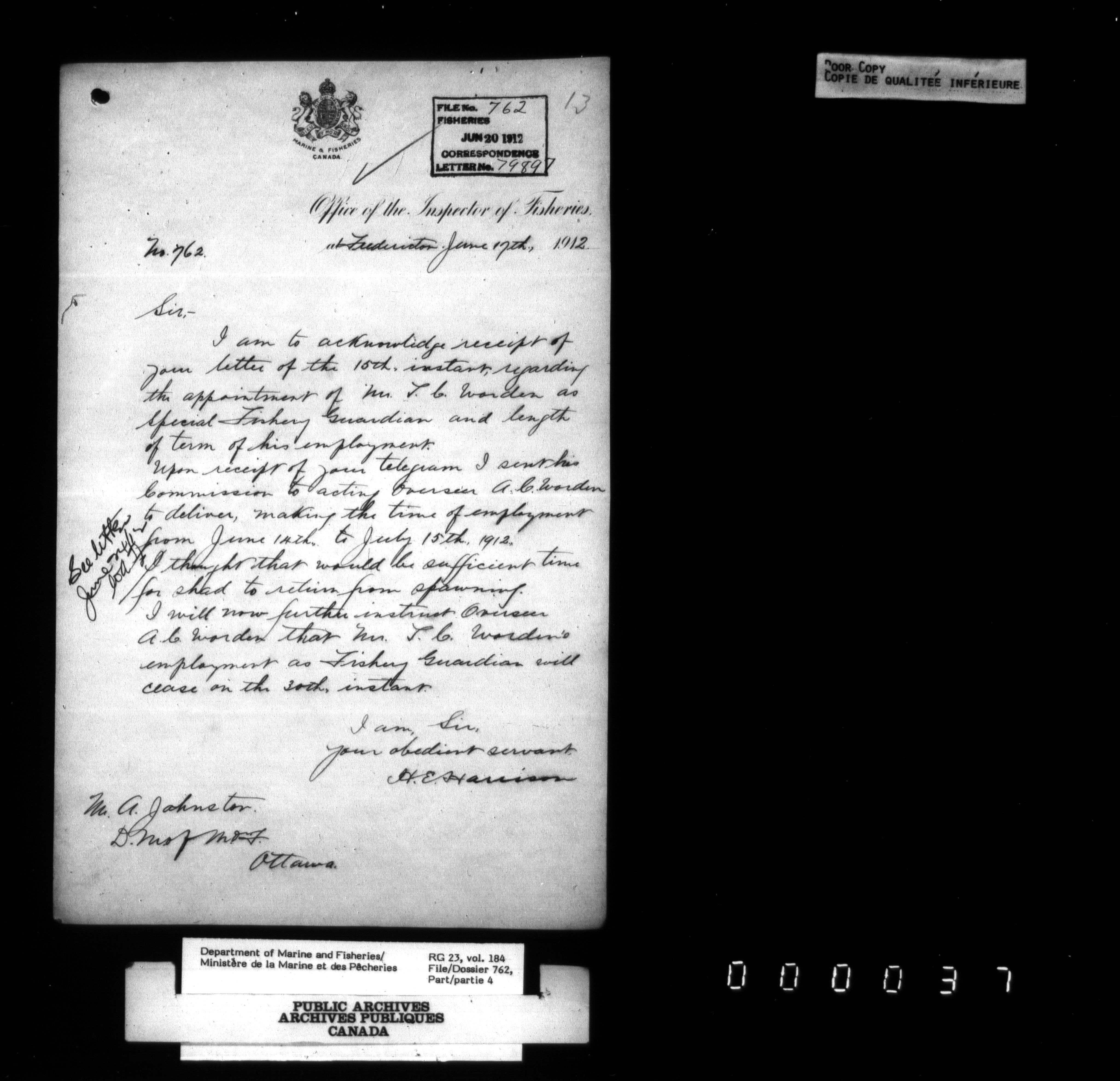Fisheries Branch Registry files - 2951