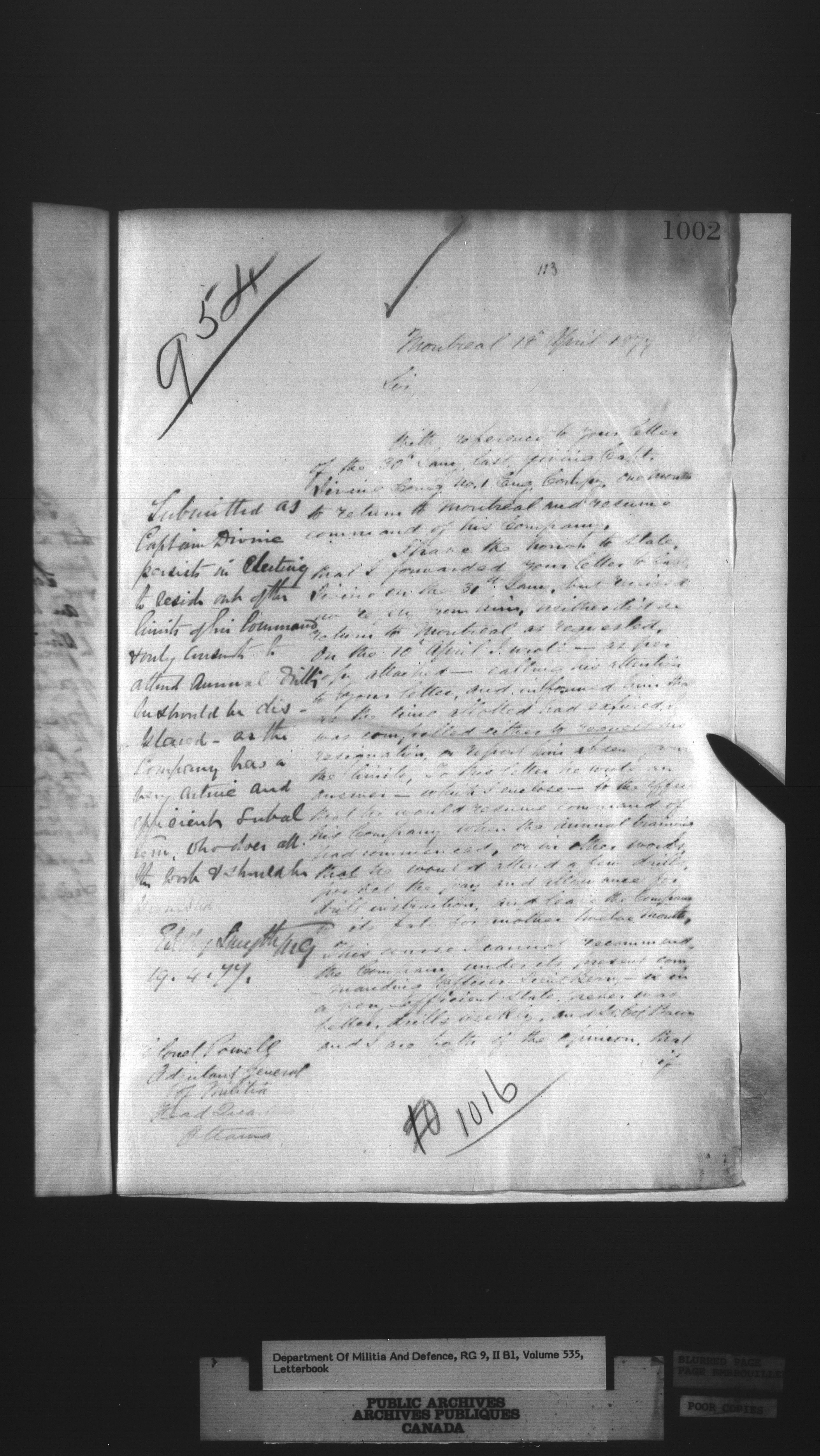 Correspondence of the General Officer Commanding (GOC) of the Canadian Militia and his predecessor, the Adjutant General - 296