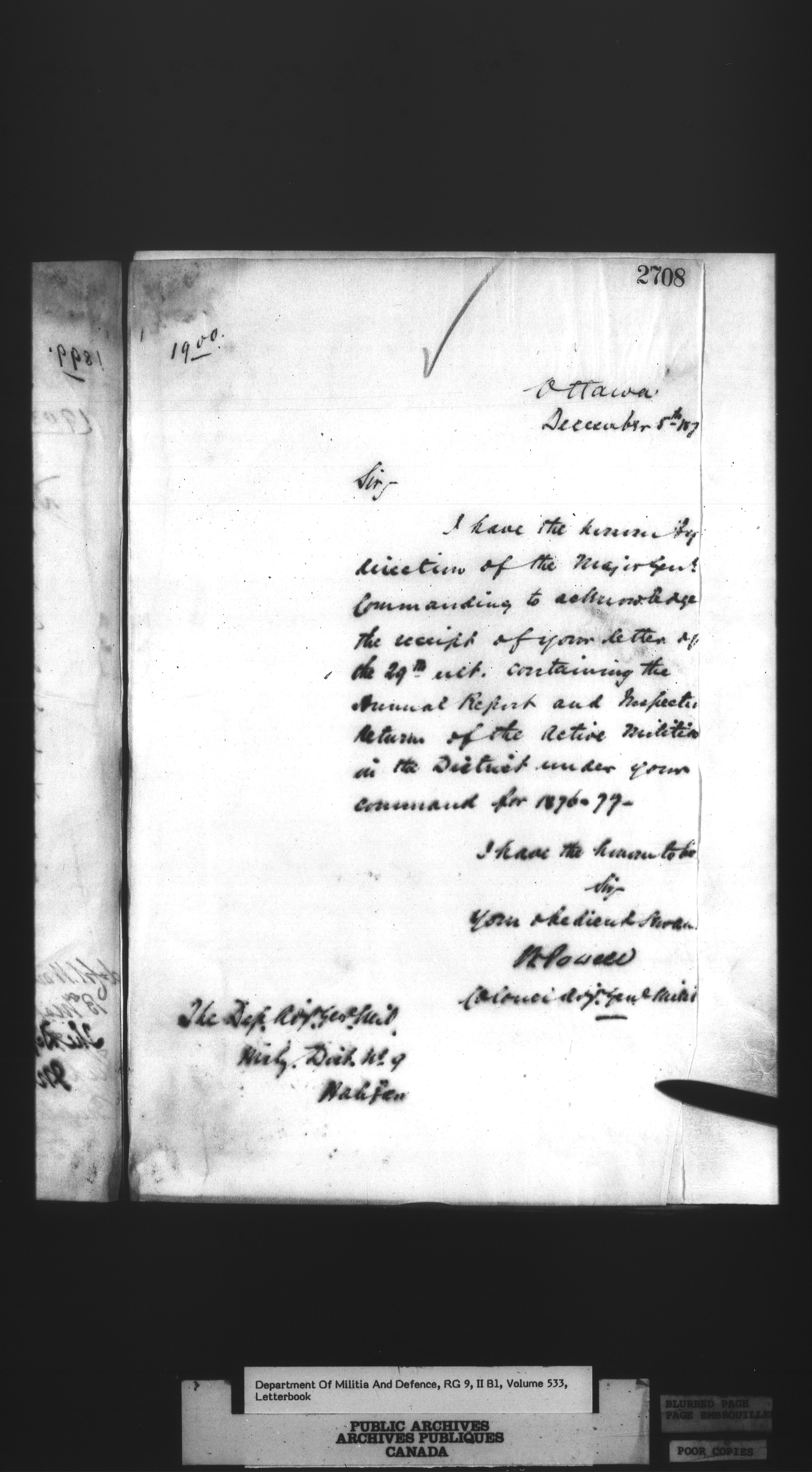 Correspondence of the General Officer Commanding (GOC) of the Canadian Militia and his predecessor, the Adjutant General - 296