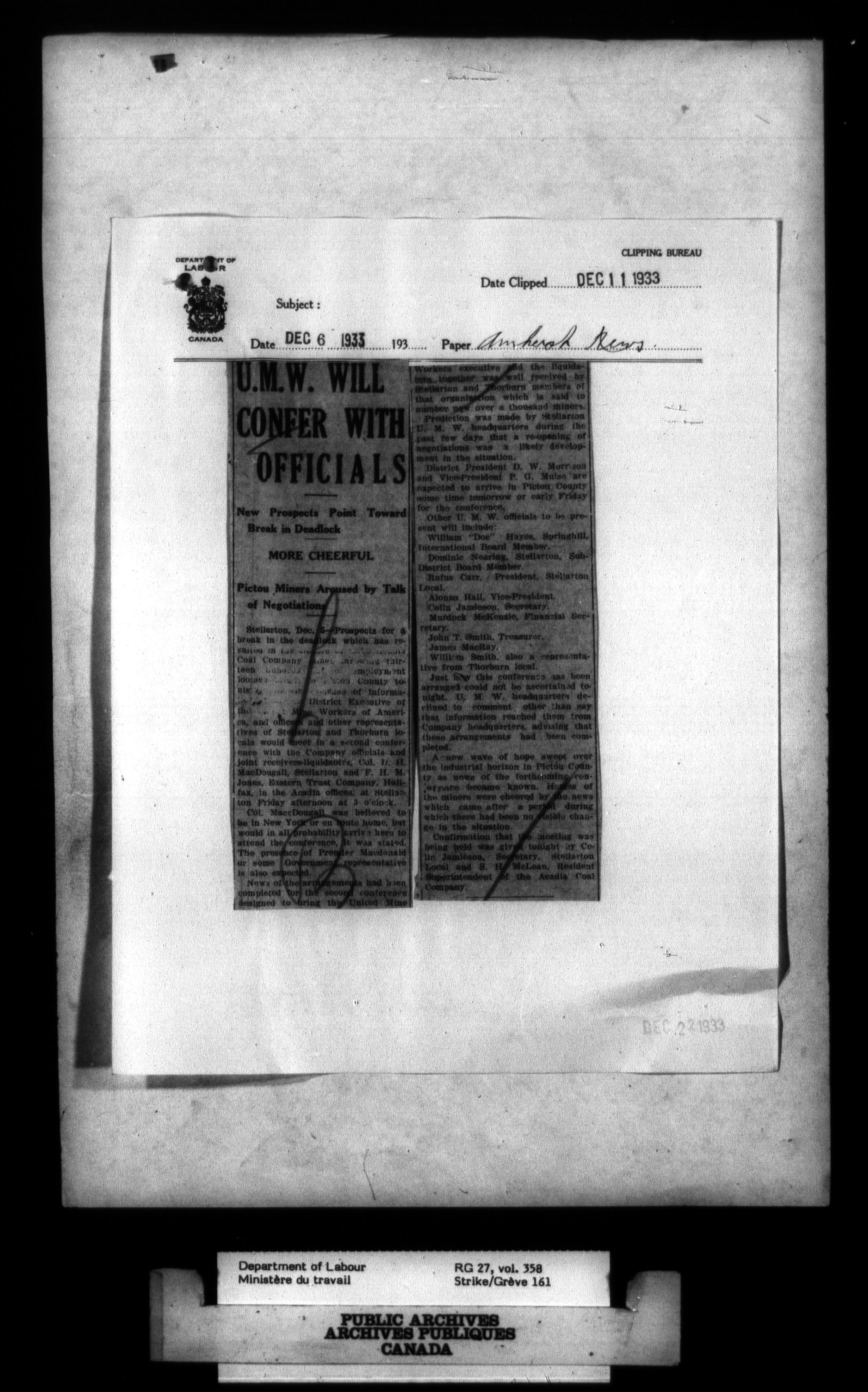 Department of Labour, Economics and Research Branch : Strikes and lockout files - 2968
