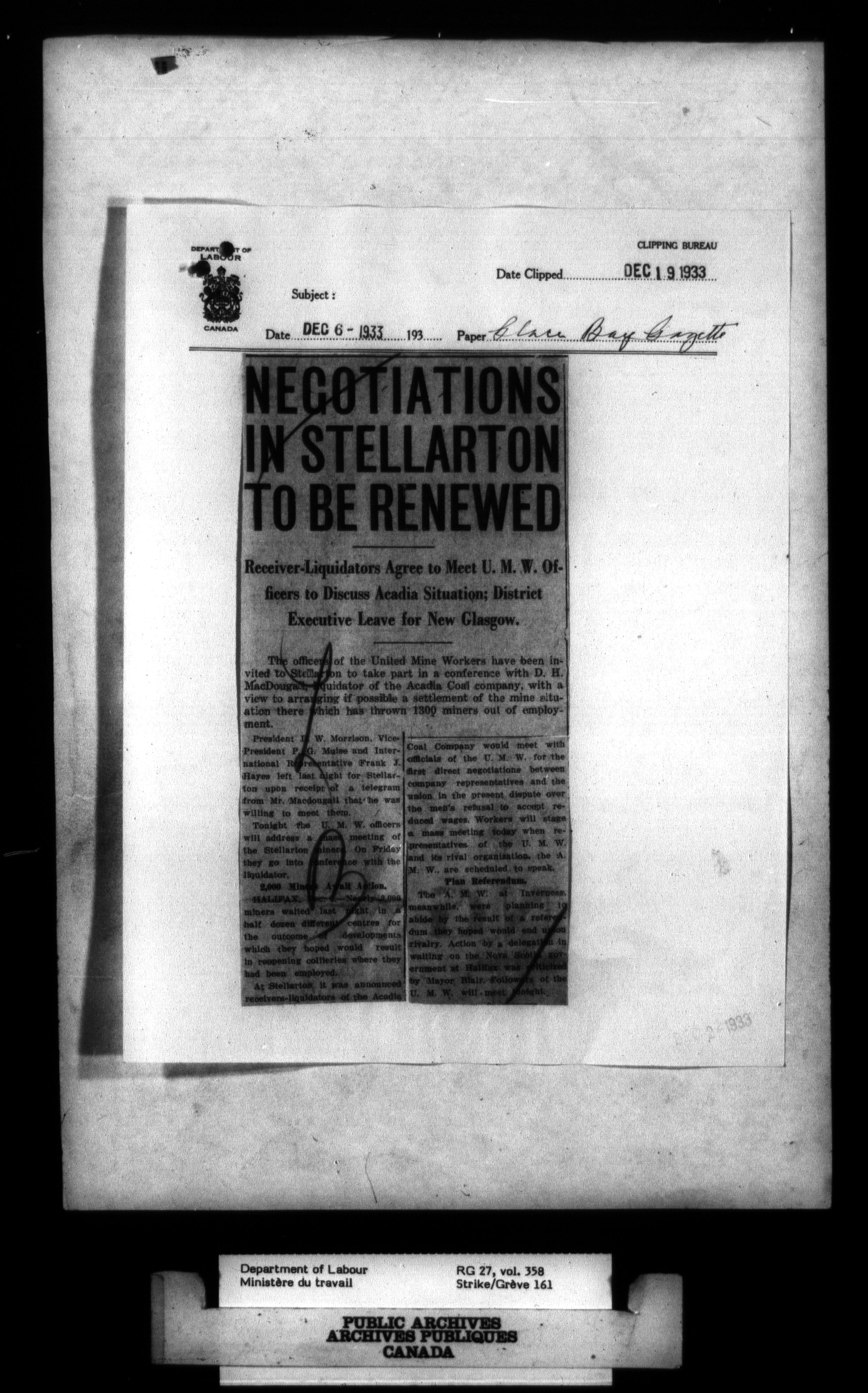 Department of Labour, Economics and Research Branch : Strikes and lockout files - 2968