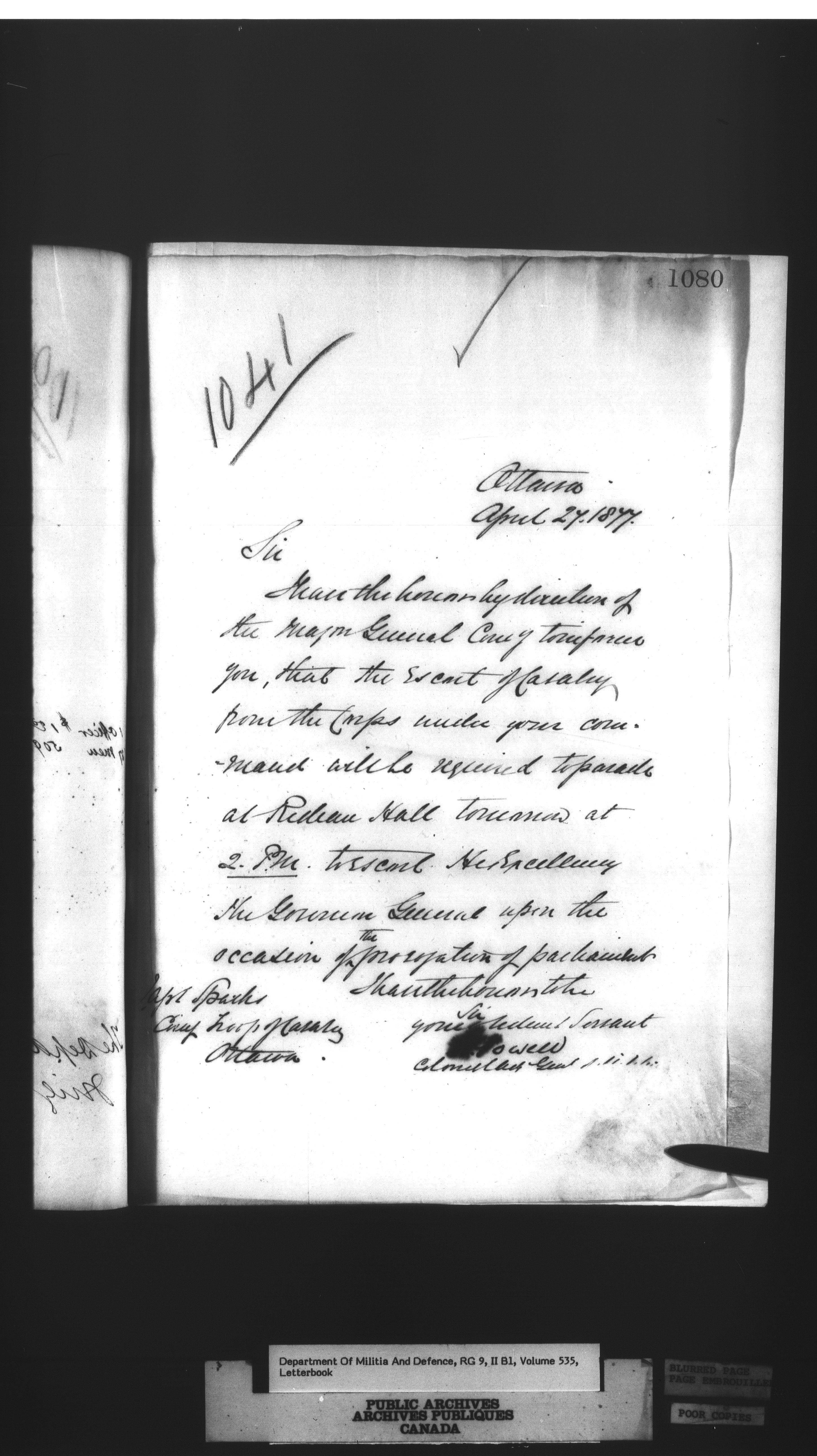 Correspondence of the General Officer Commanding (GOC) of the Canadian Militia and his predecessor, the Adjutant General - 297