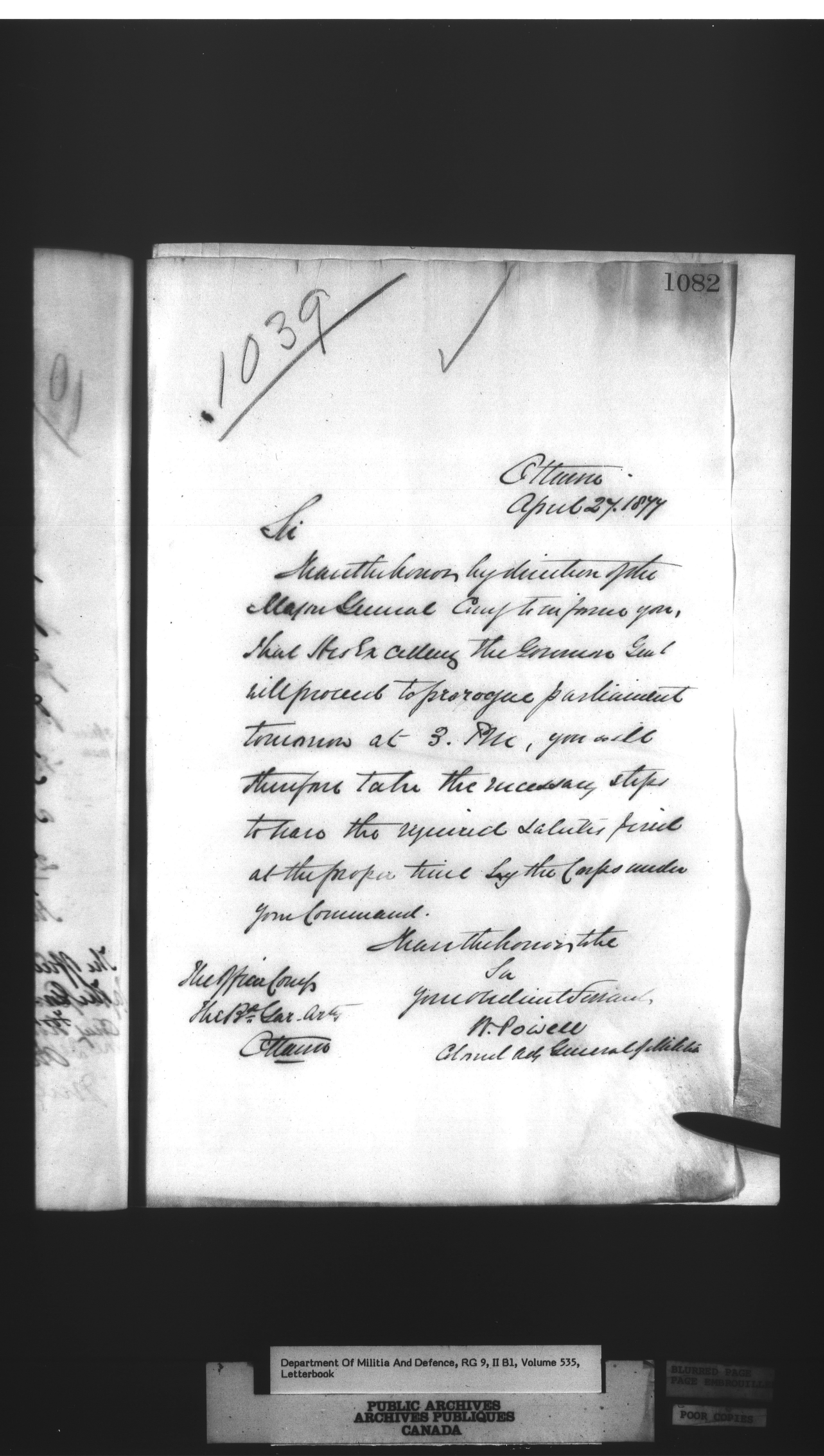 Correspondence of the General Officer Commanding (GOC) of the Canadian Militia and his predecessor, the Adjutant General - 297