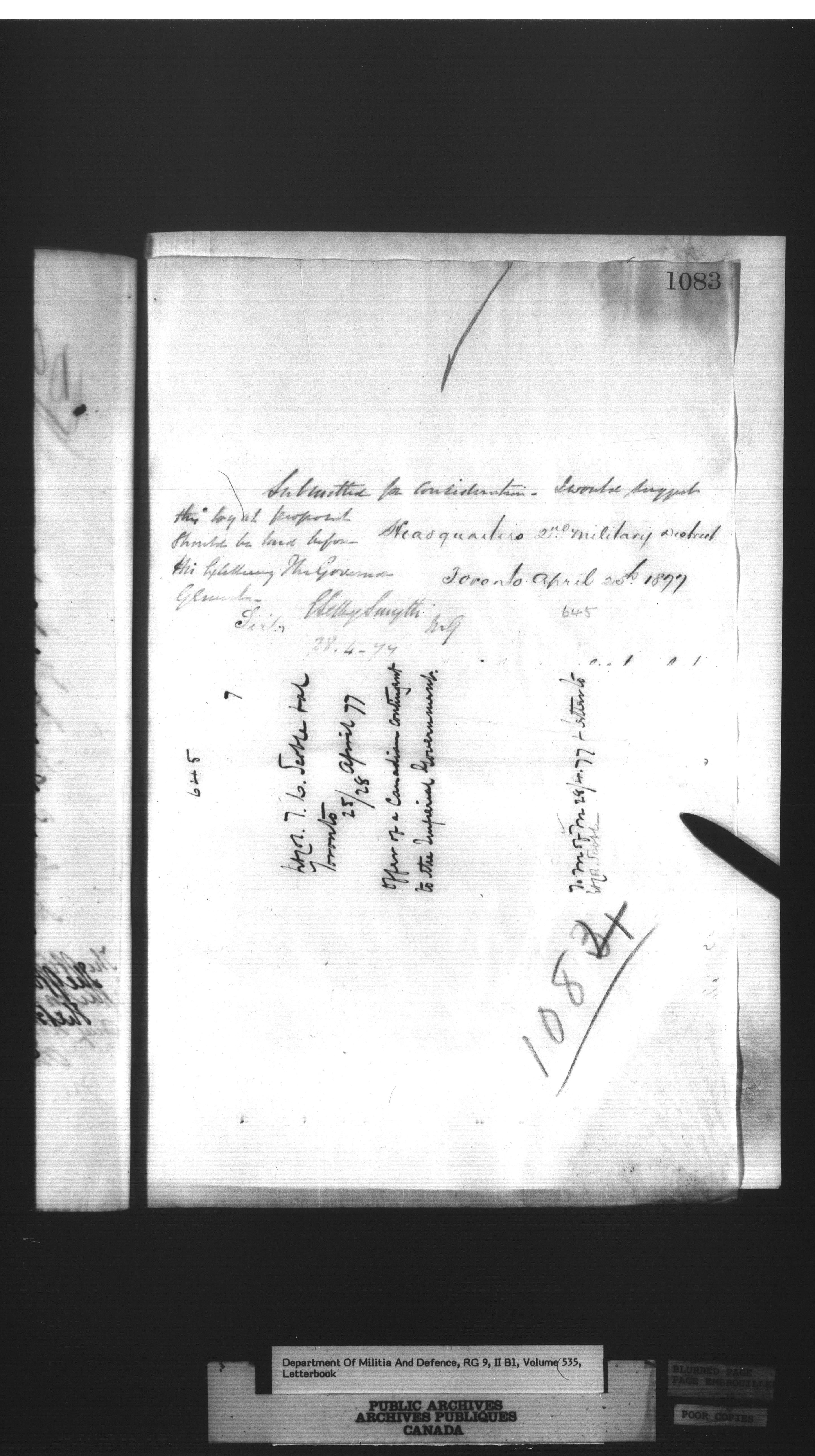 Correspondence of the General Officer Commanding (GOC) of the Canadian Militia and his predecessor, the Adjutant General - 297
