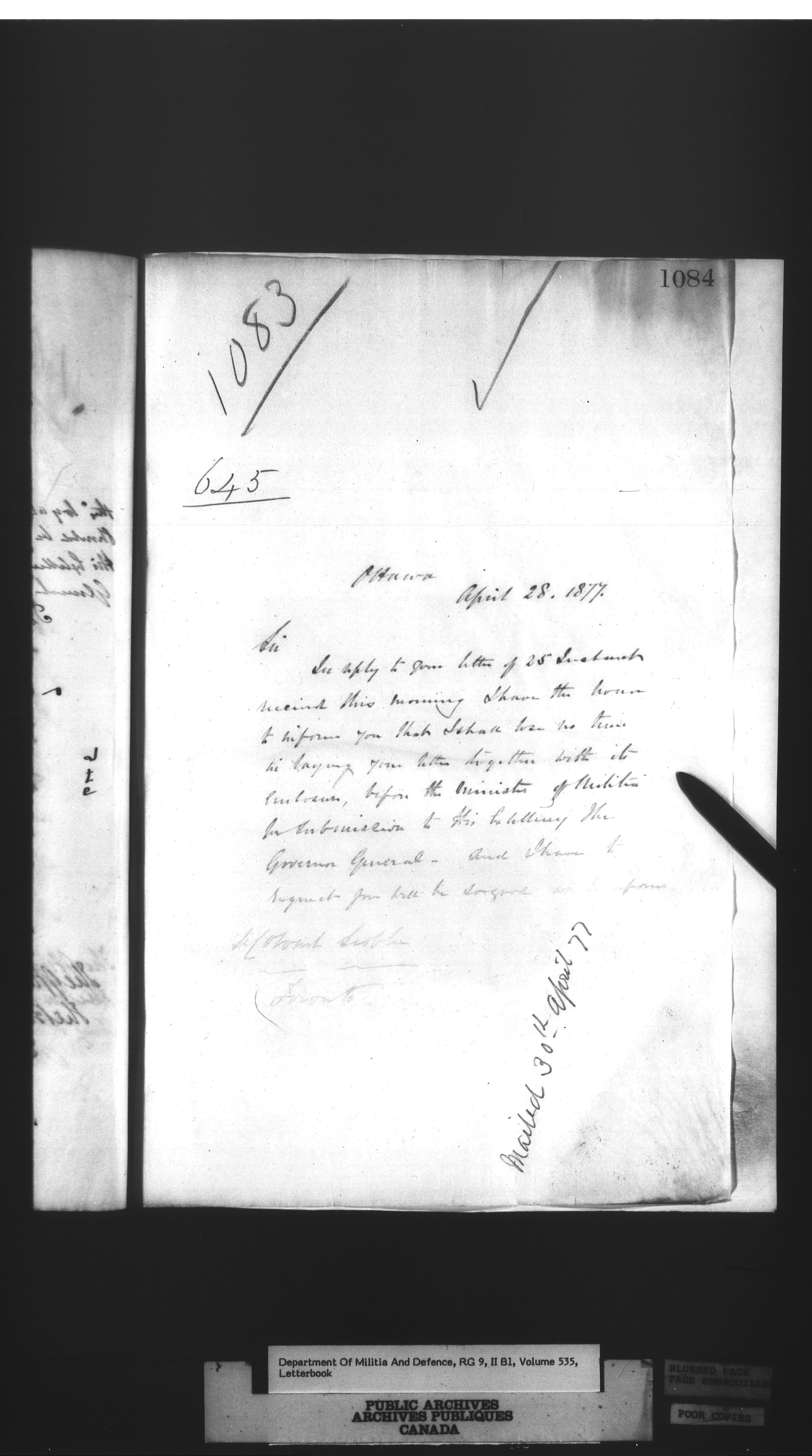 Correspondence of the General Officer Commanding (GOC) of the Canadian Militia and his predecessor, the Adjutant General - 297