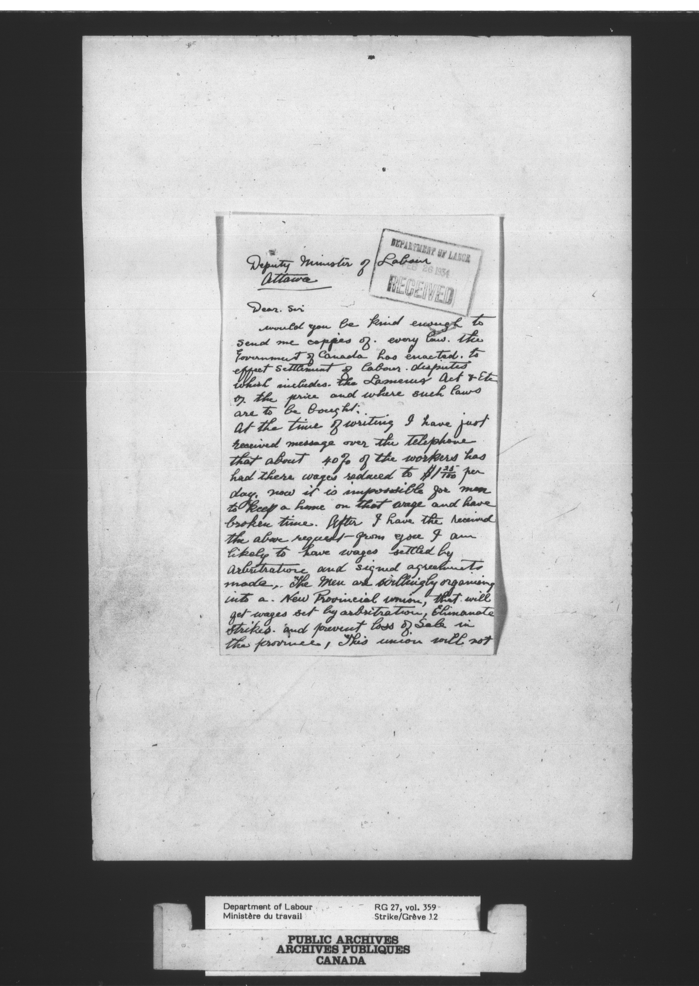 Department of Labour, Economics and Research Branch : Strikes and lockout files - 2970