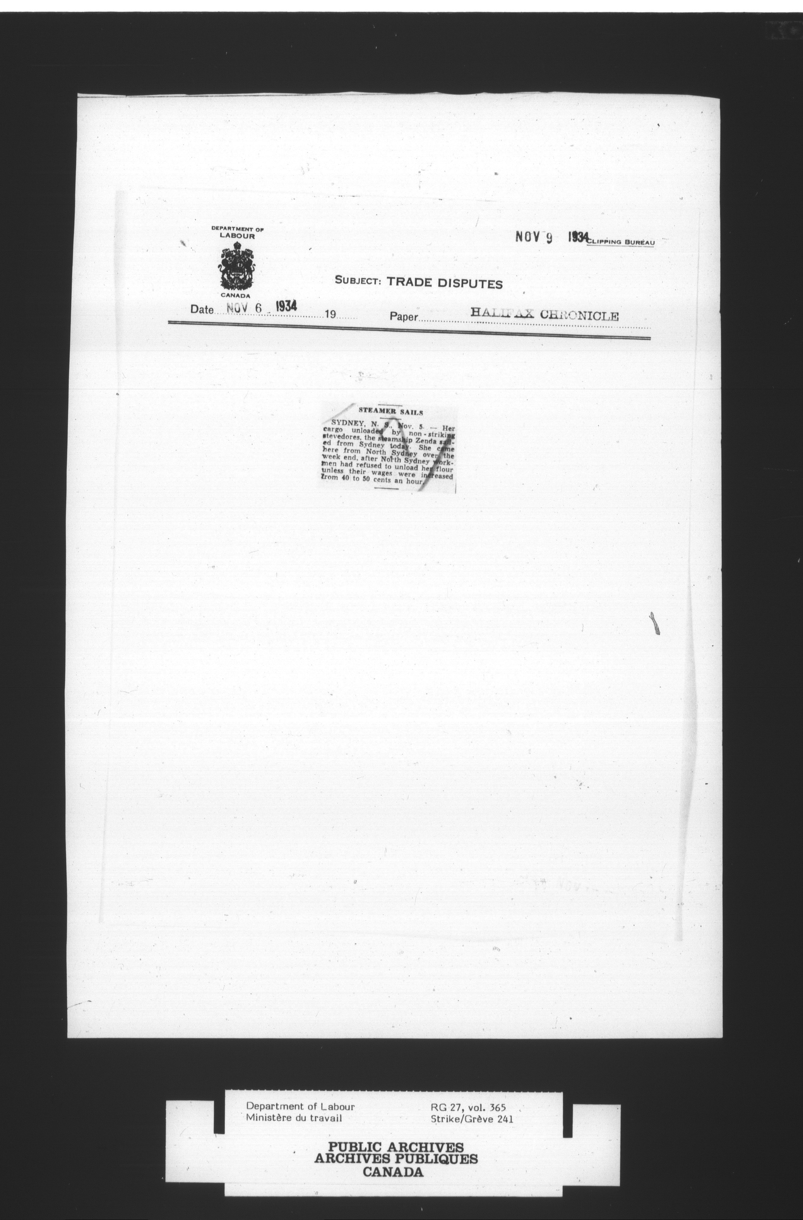 Department of Labour, Economics and Research Branch : Strikes and lockout files - 2976