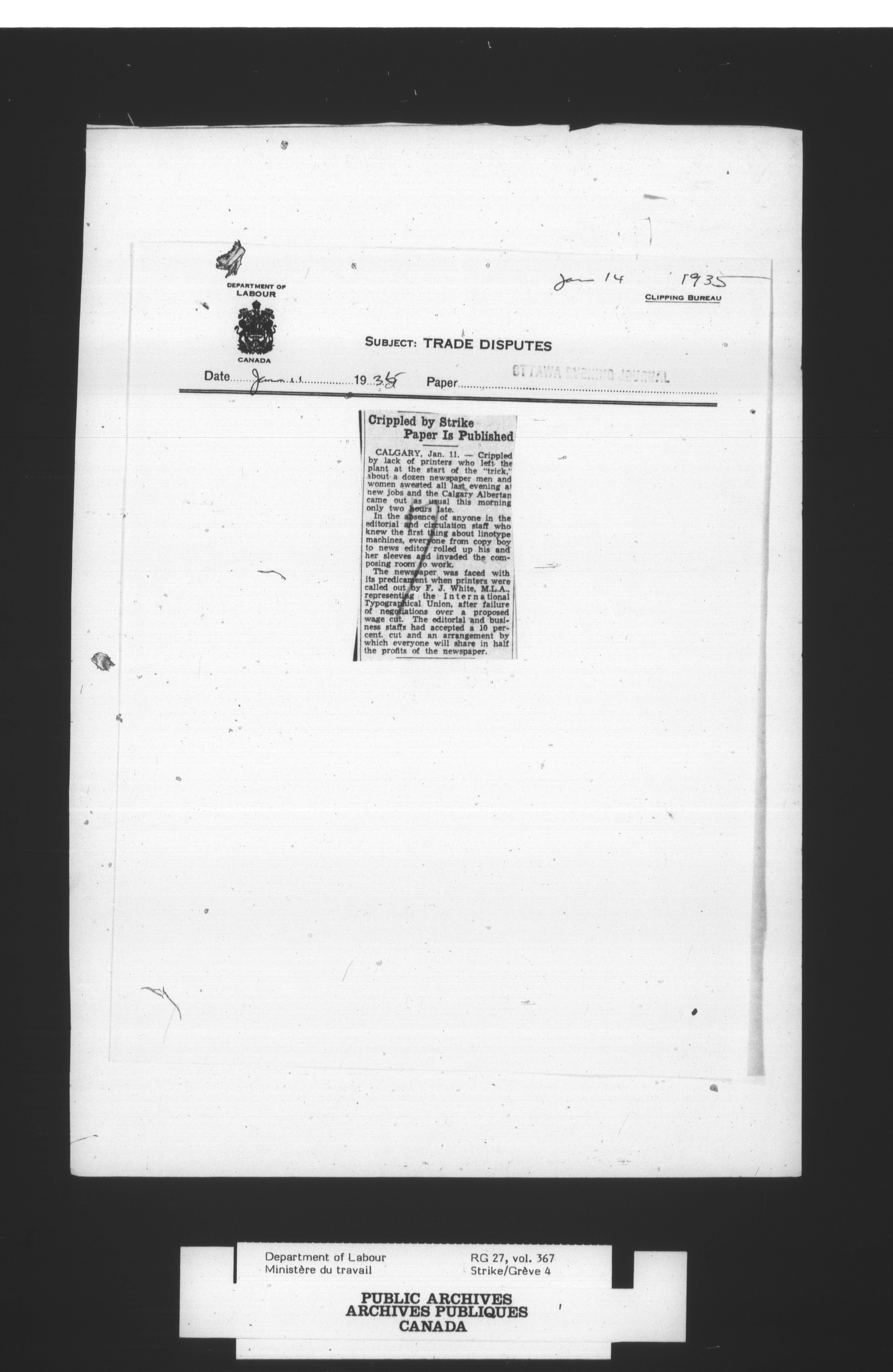 Department of Labour, Economics and Research Branch : Strikes and lockout files - 2976