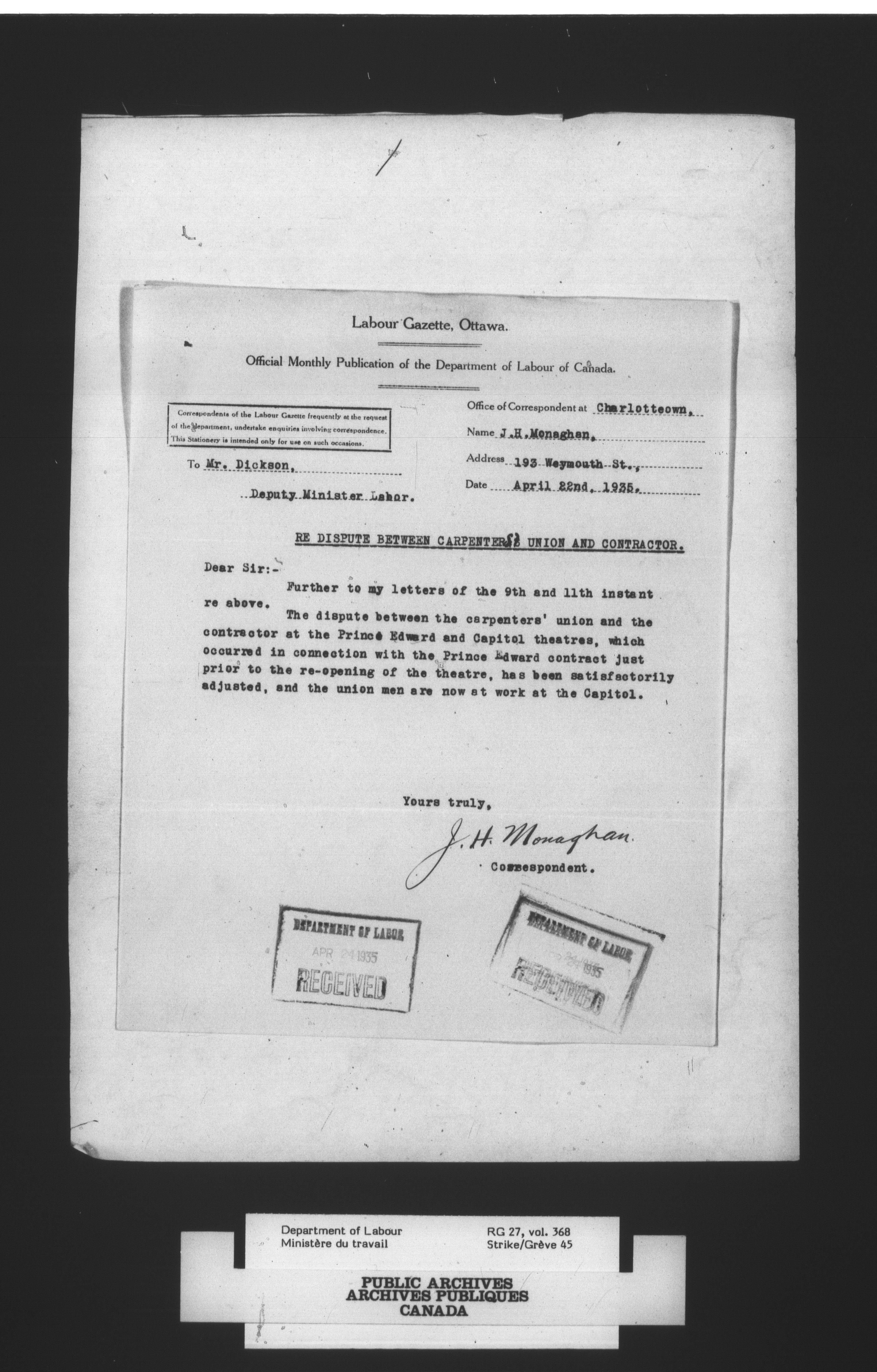 Department of Labour, Economics and Research Branch : Strikes and lockout files - 2977