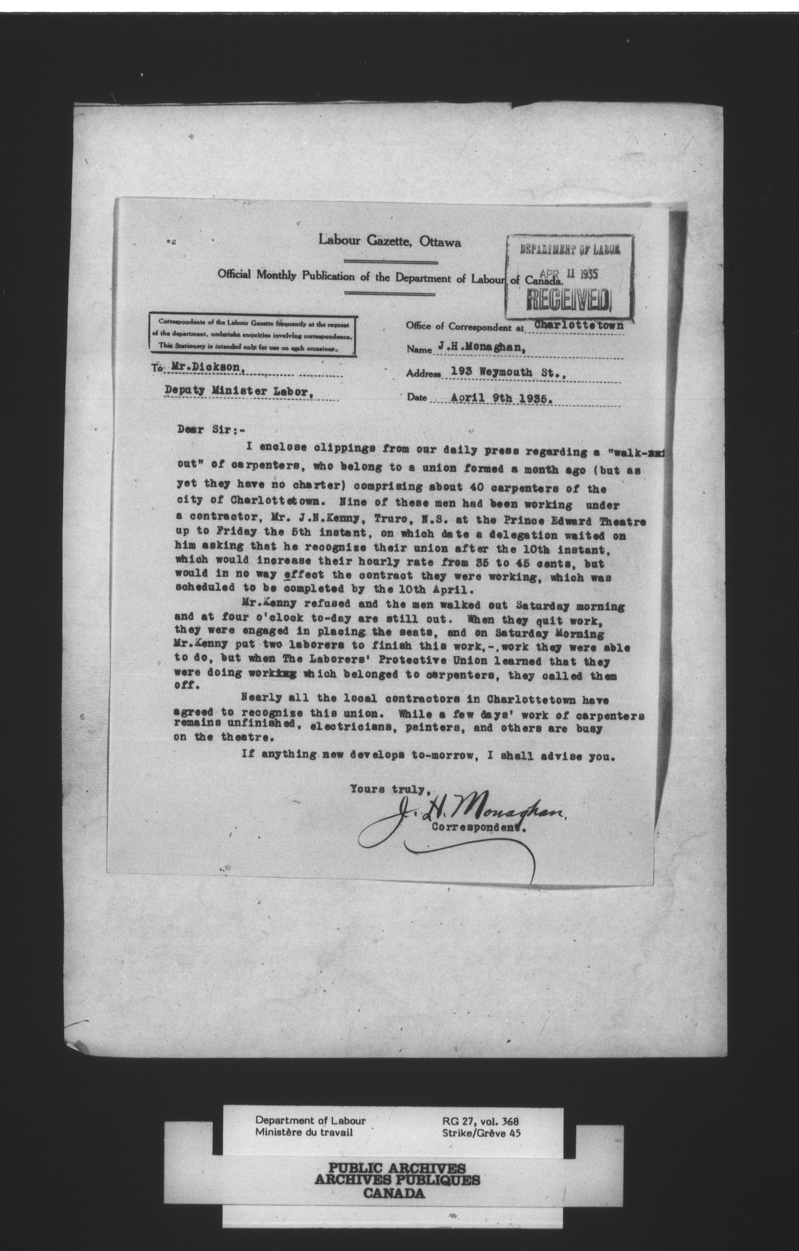 Department of Labour, Economics and Research Branch : Strikes and lockout files - 2977