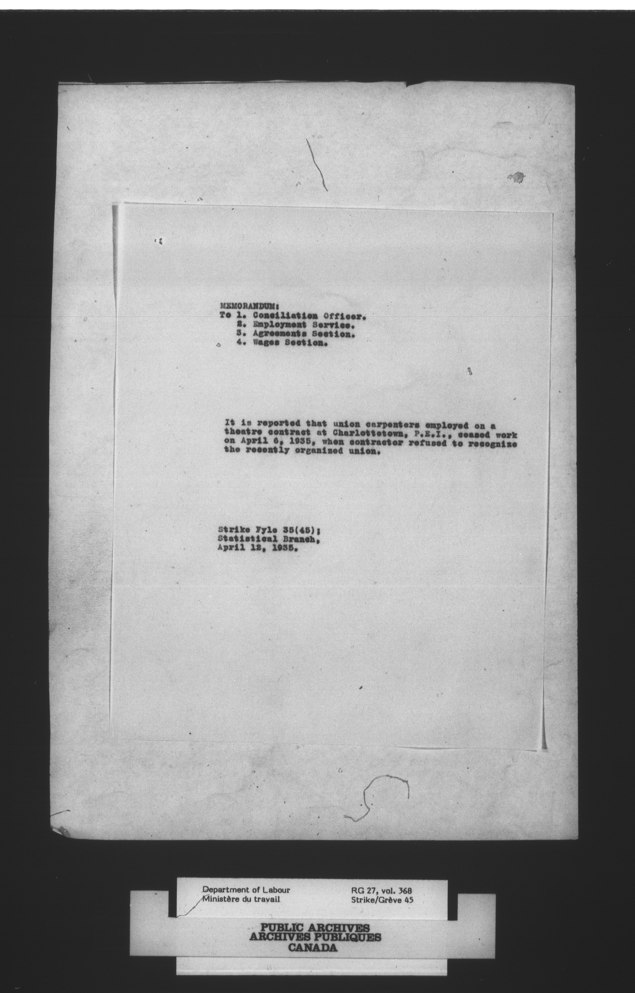 Department of Labour, Economics and Research Branch : Strikes and lockout files : T-2977
