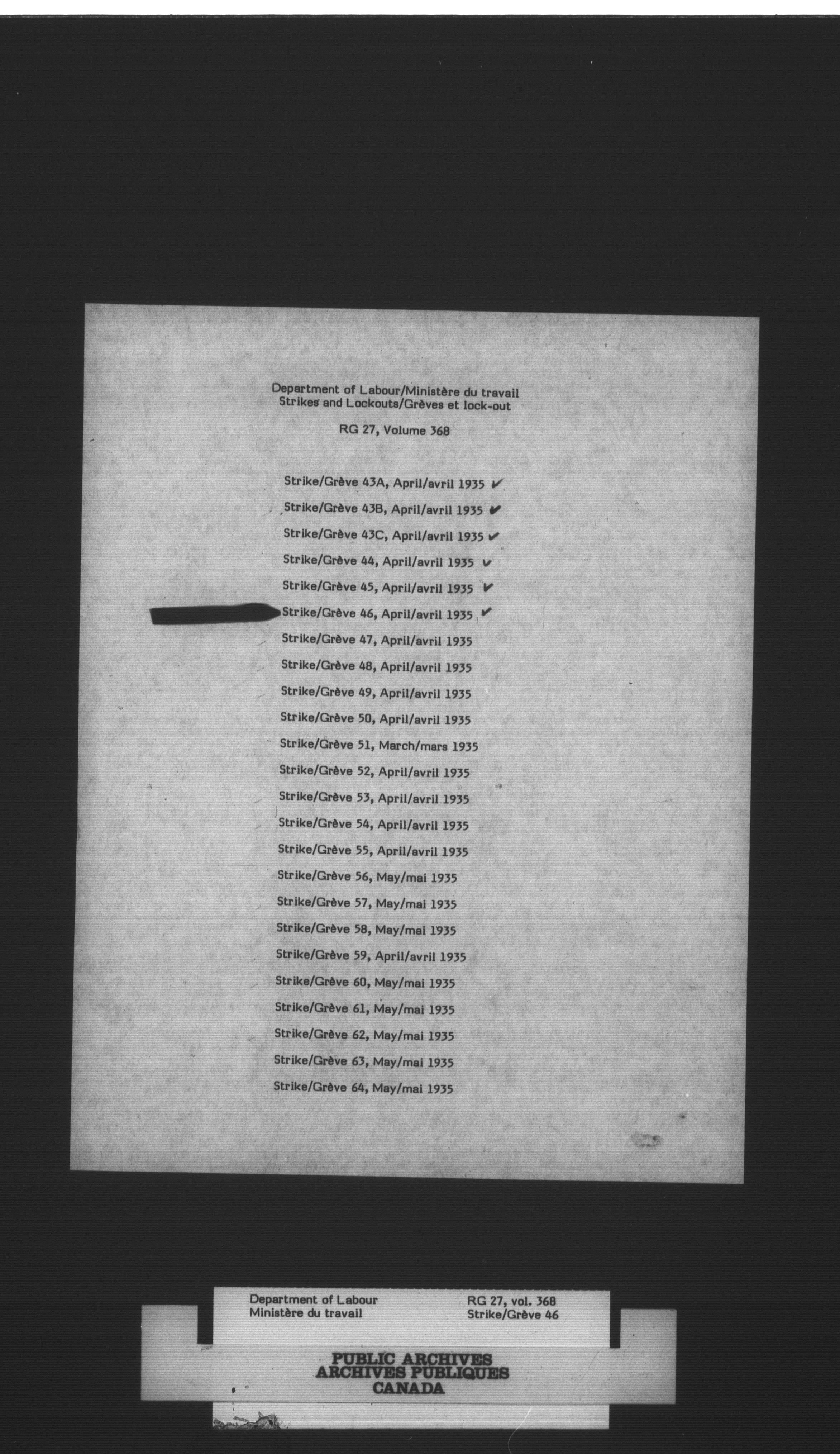 Department of Labour, Economics and Research Branch : Strikes and lockout files - 2977