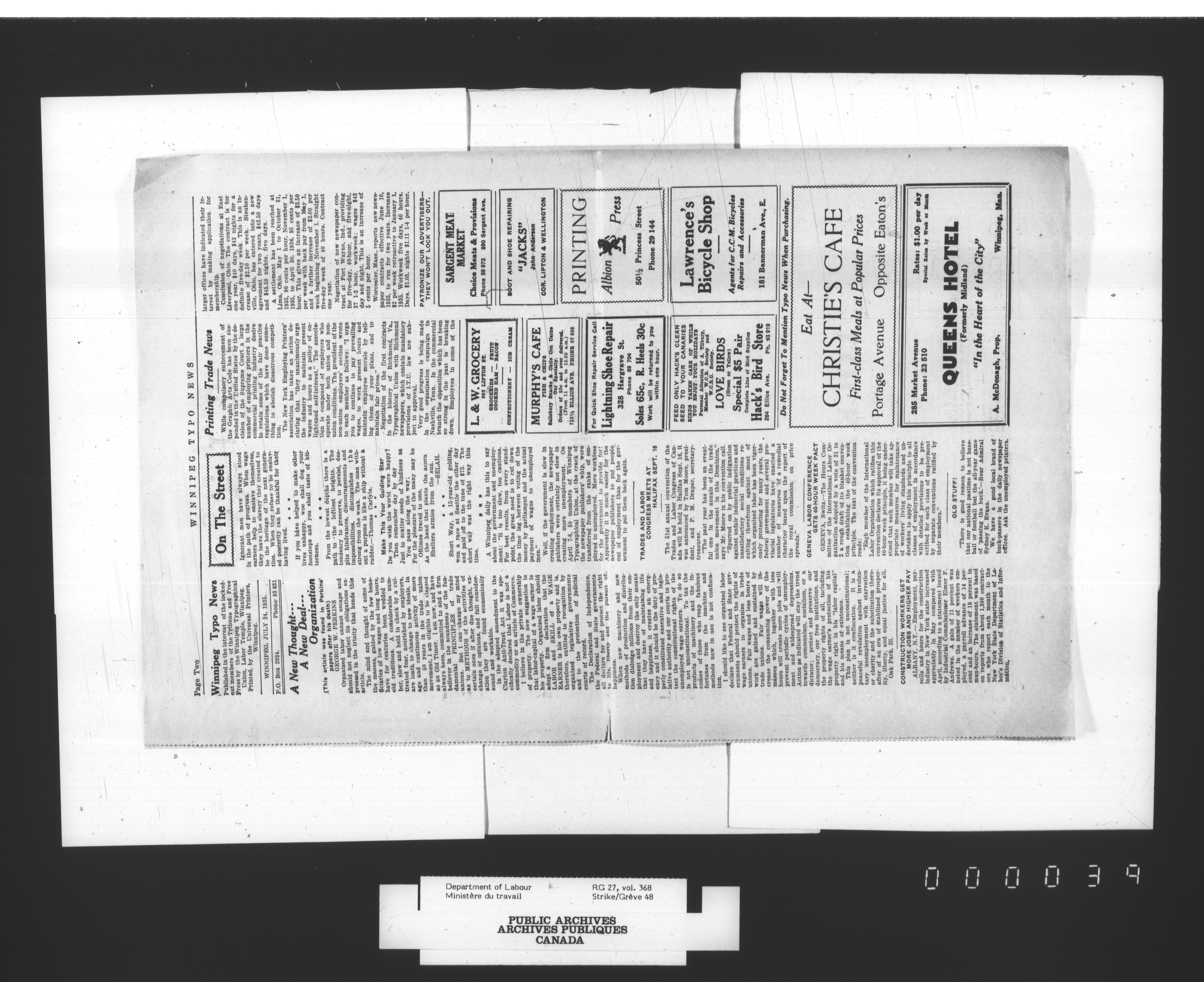 Department of Labour, Economics and Research Branch : Strikes and lockout files - 2978