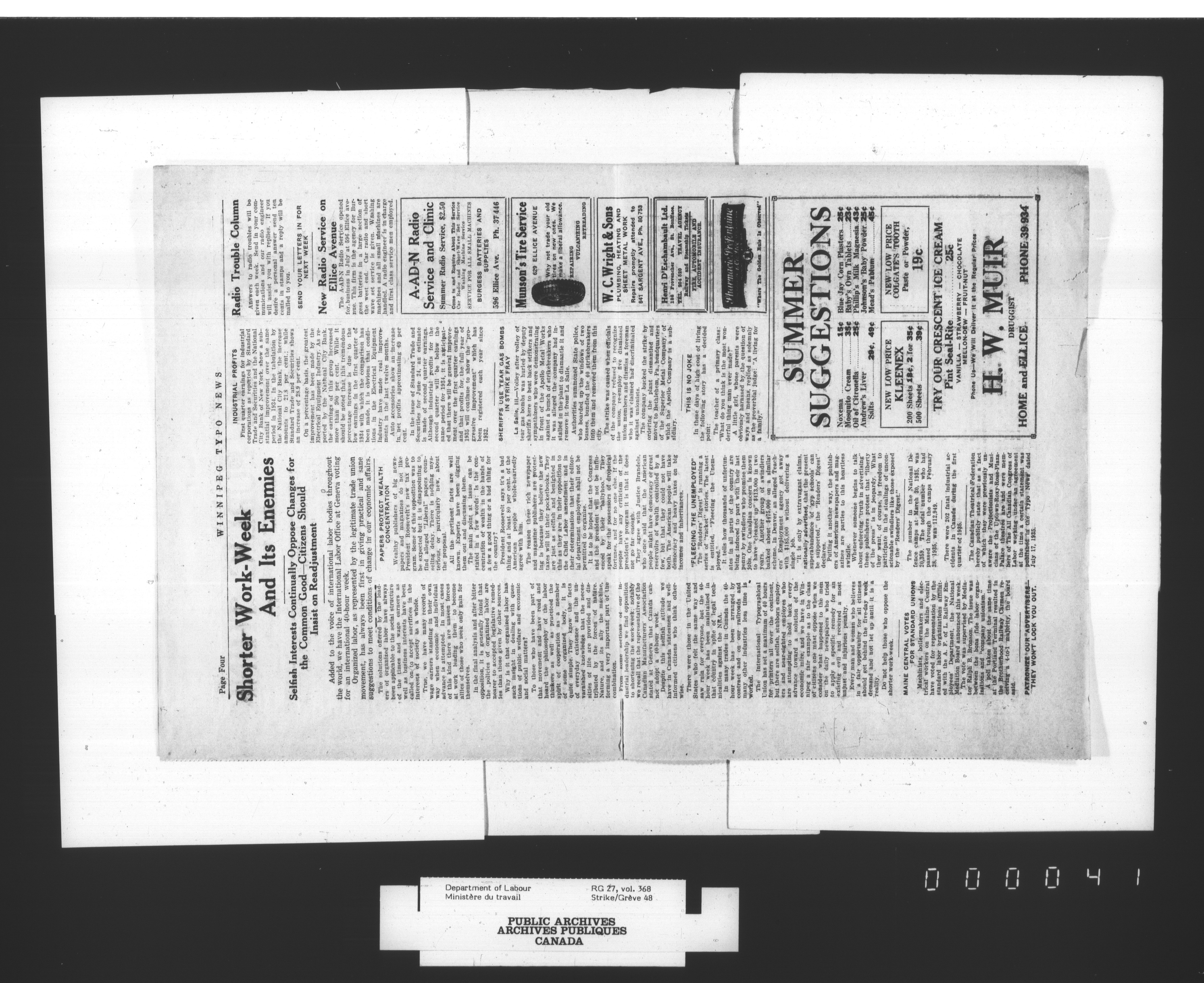 Department of Labour, Economics and Research Branch : Strikes and lockout files - 2978