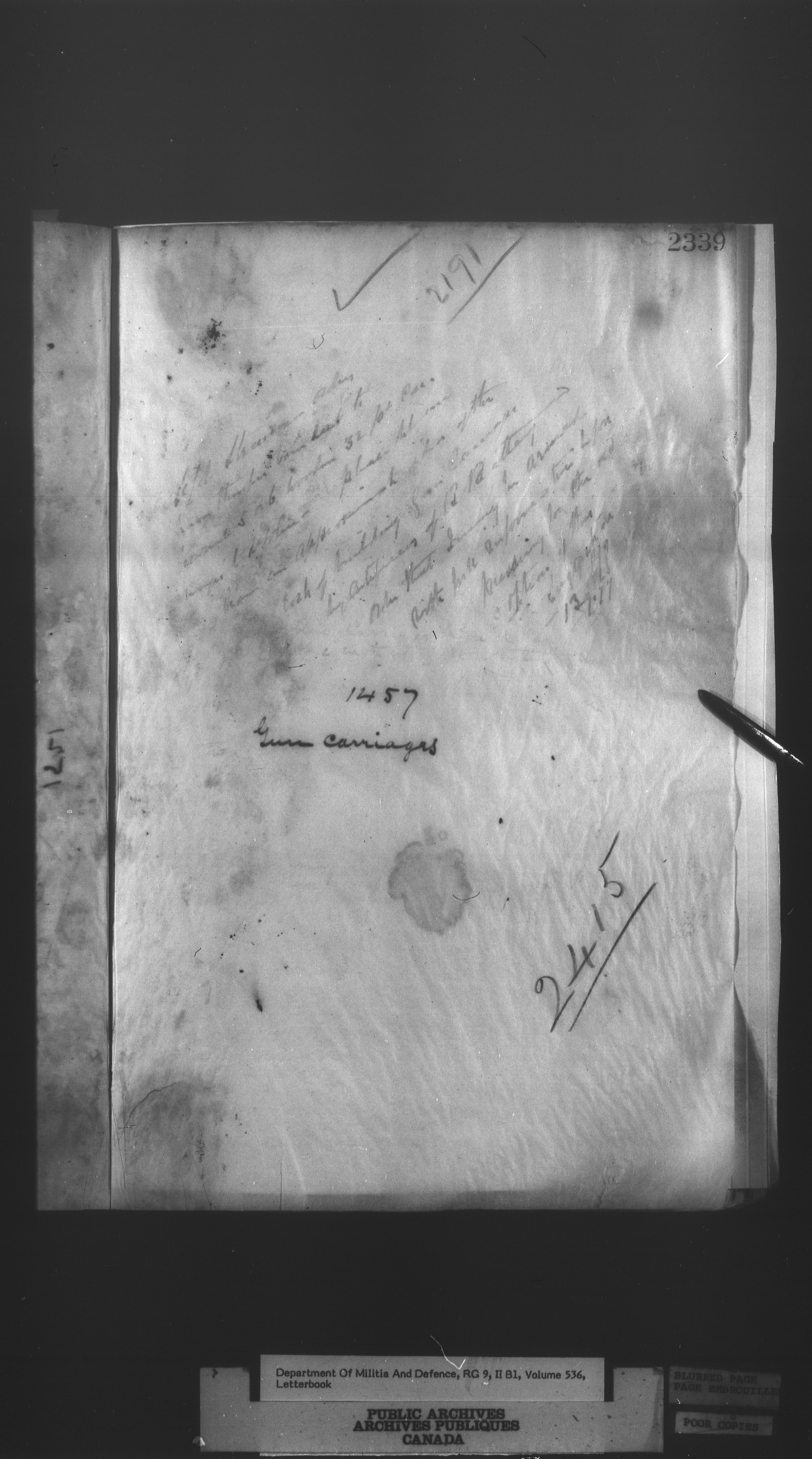 Correspondence of the General Officer Commanding (GOC) of the Canadian Militia and his predecessor, the Adjutant General - 298