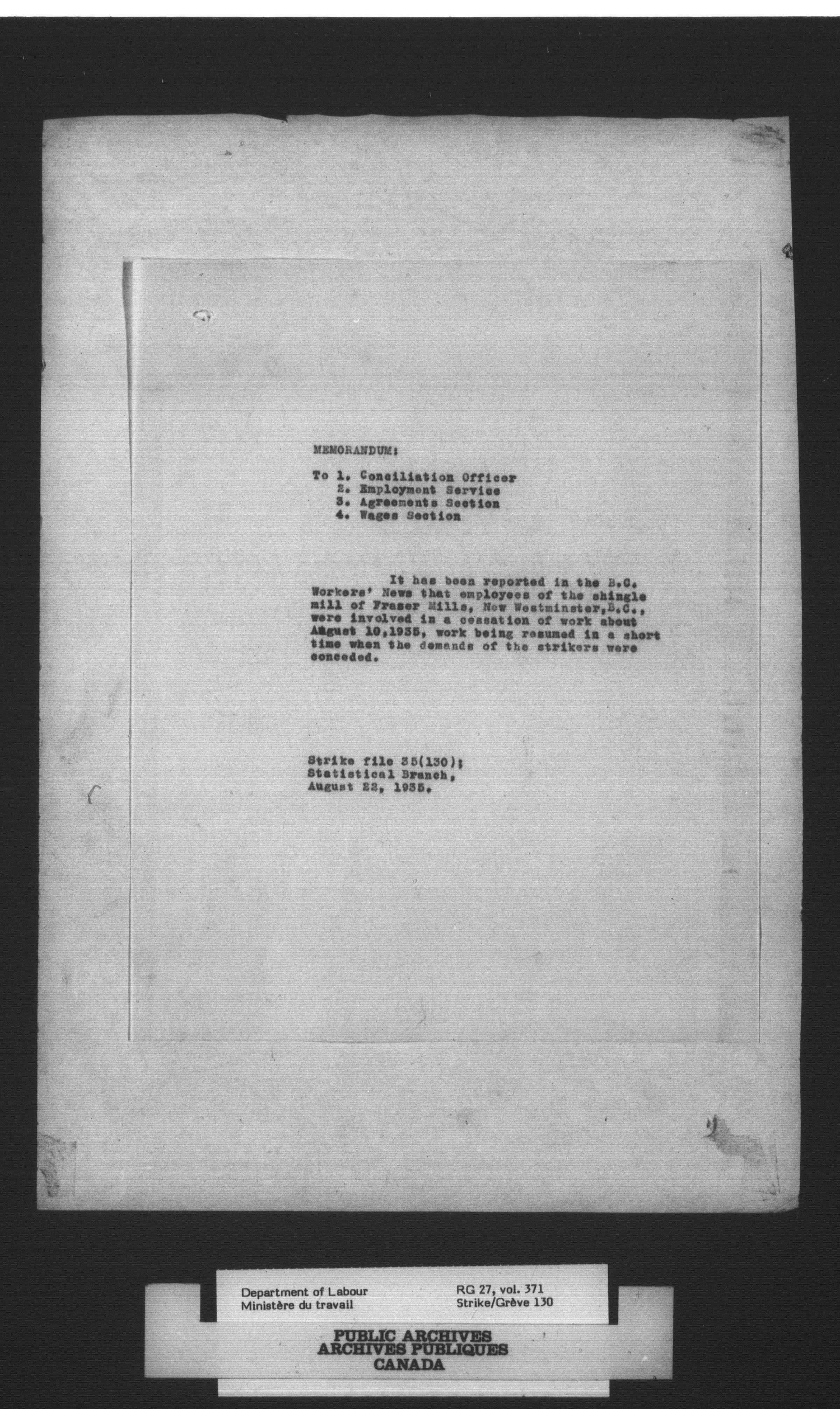 Department of Labour, Economics and Research Branch : Strikes and lockout files - 2980