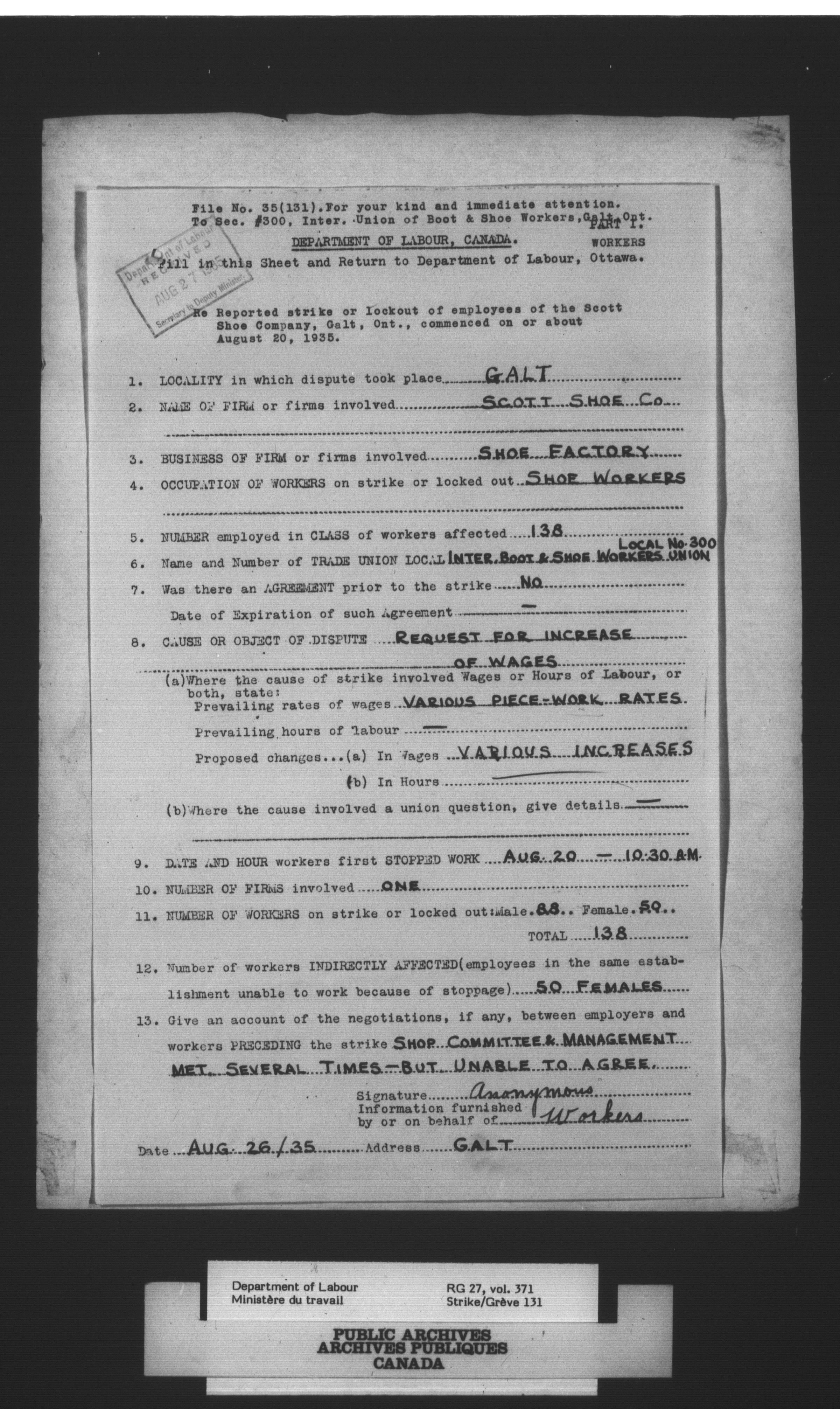 Department of Labour, Economics and Research Branch : Strikes and lockout files - 2980