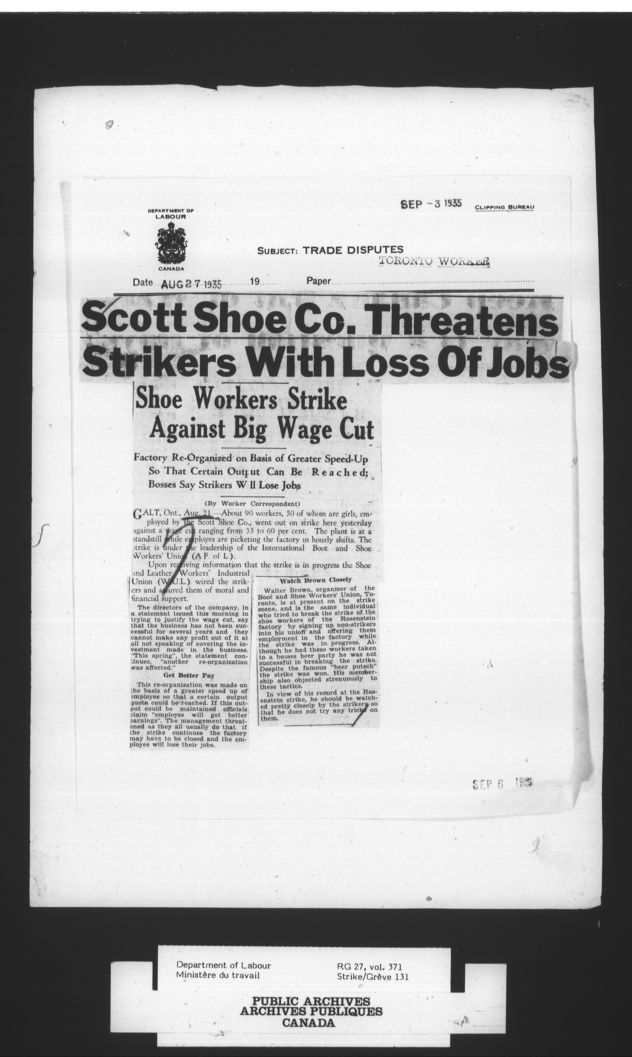 Department of Labour, Economics and Research Branch : Strikes and lockout files - 2980