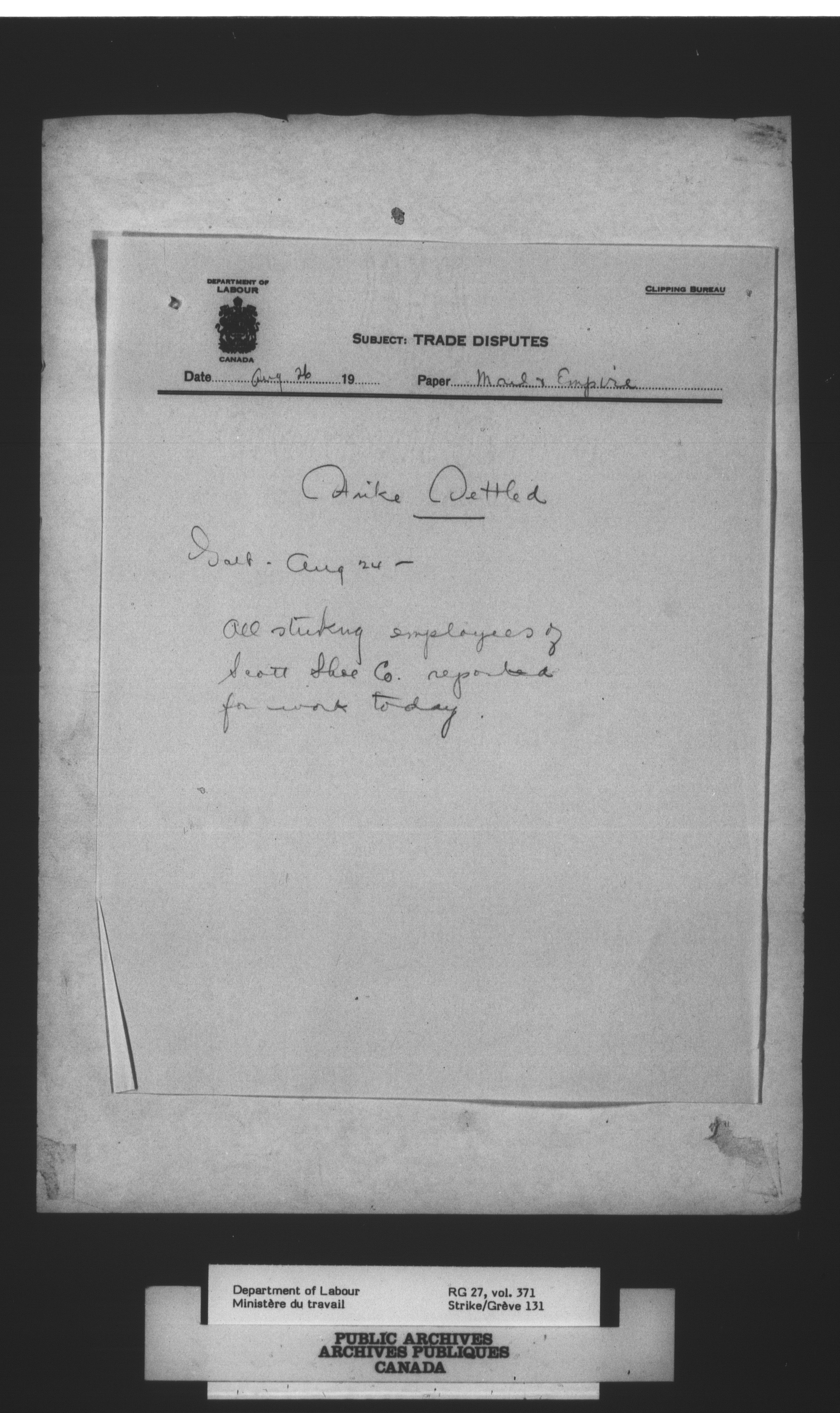 Department of Labour, Economics and Research Branch : Strikes and lockout files - 2980