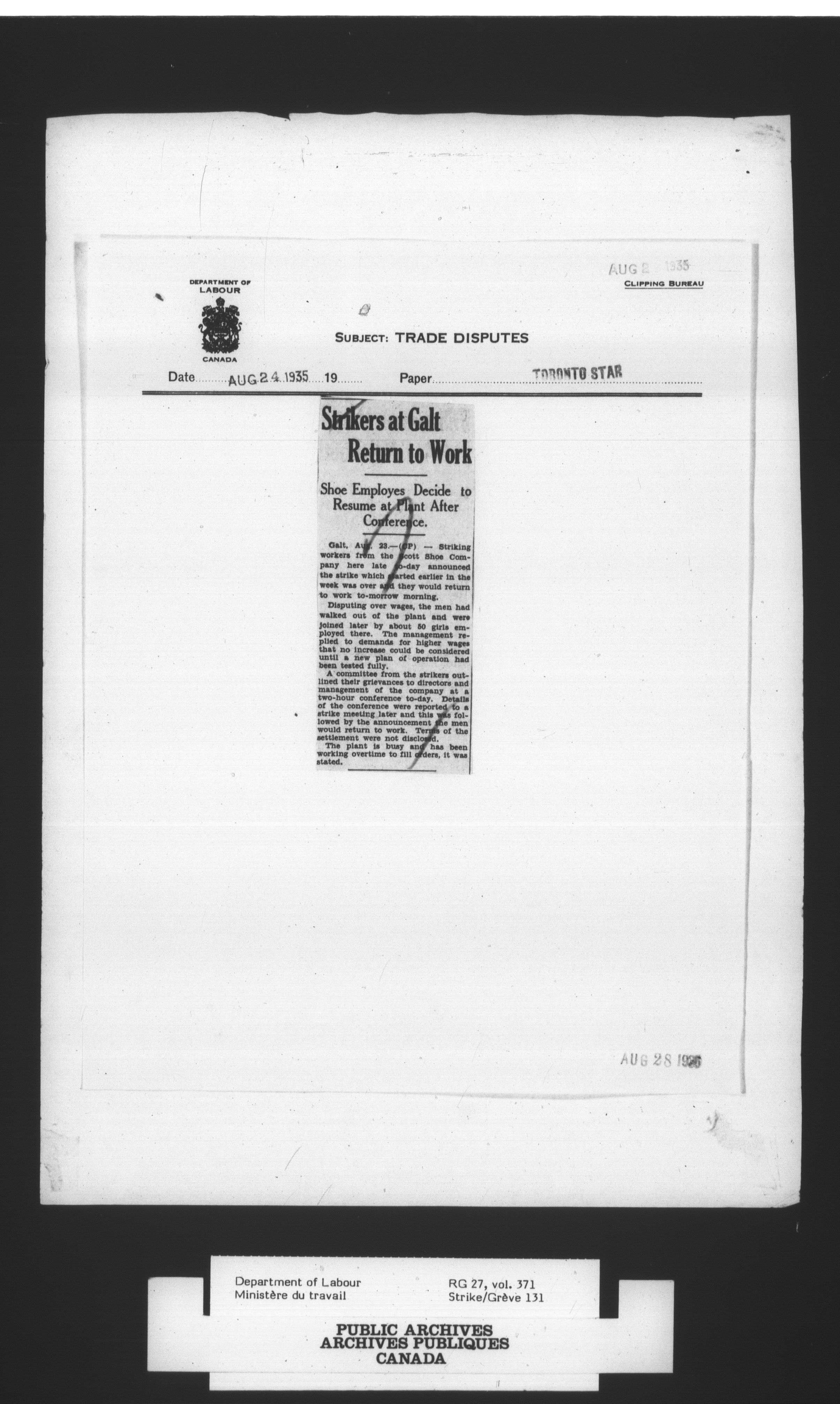 Department of Labour, Economics and Research Branch : Strikes and lockout files - 2980