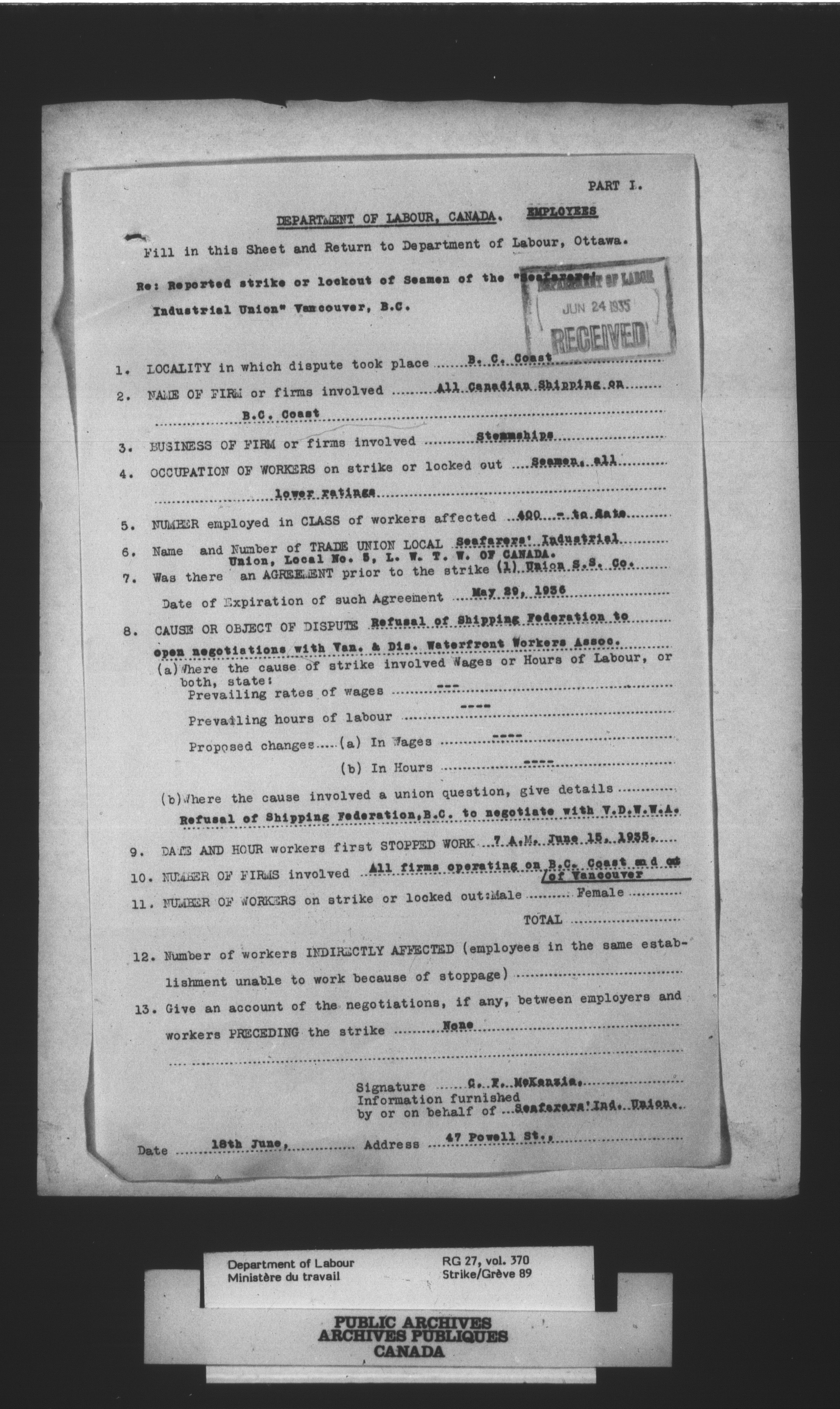 Department of Labour, Economics and Research Branch : Strikes and lockout files - 2980