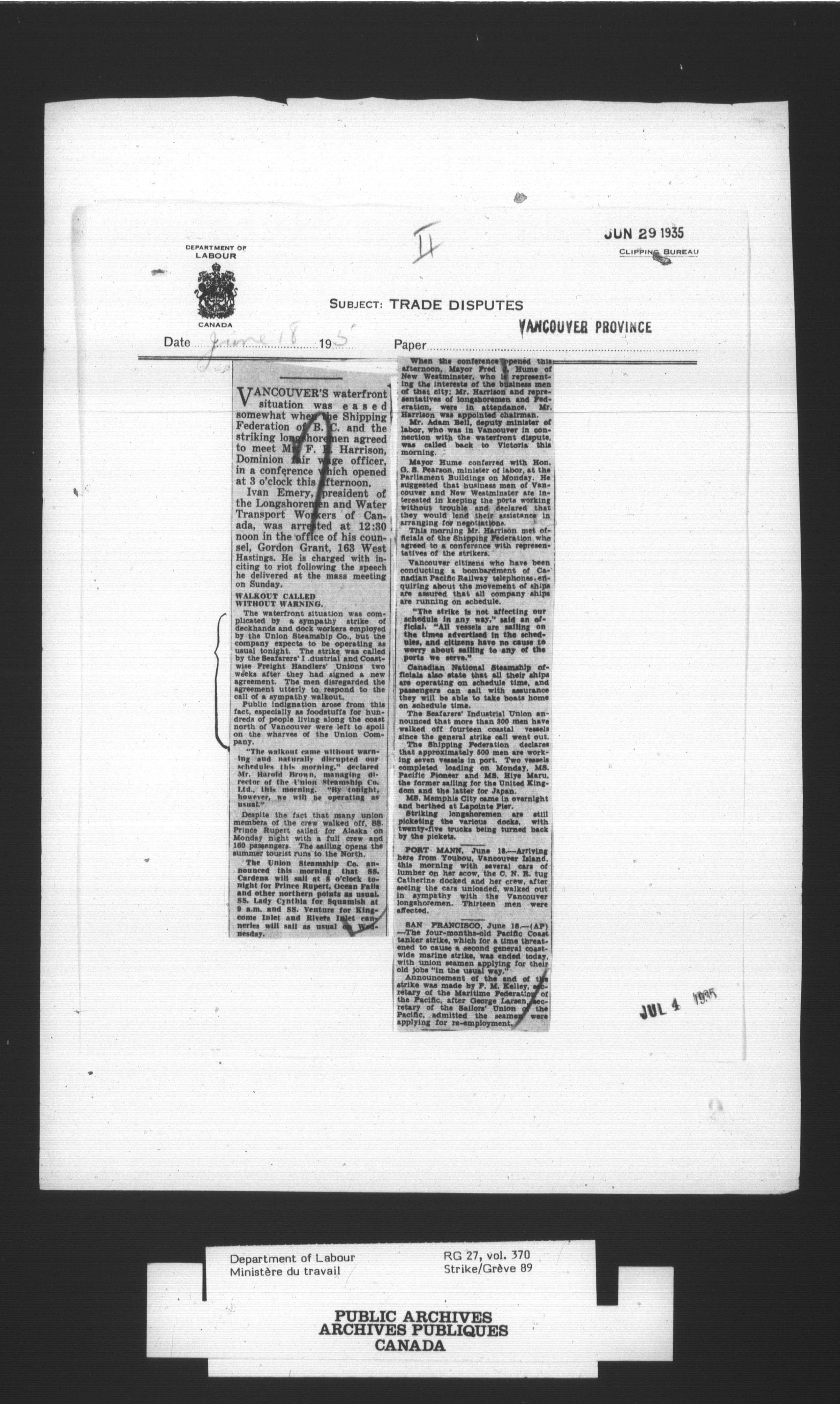 Department of Labour, Economics and Research Branch : Strikes and lockout files - 2980