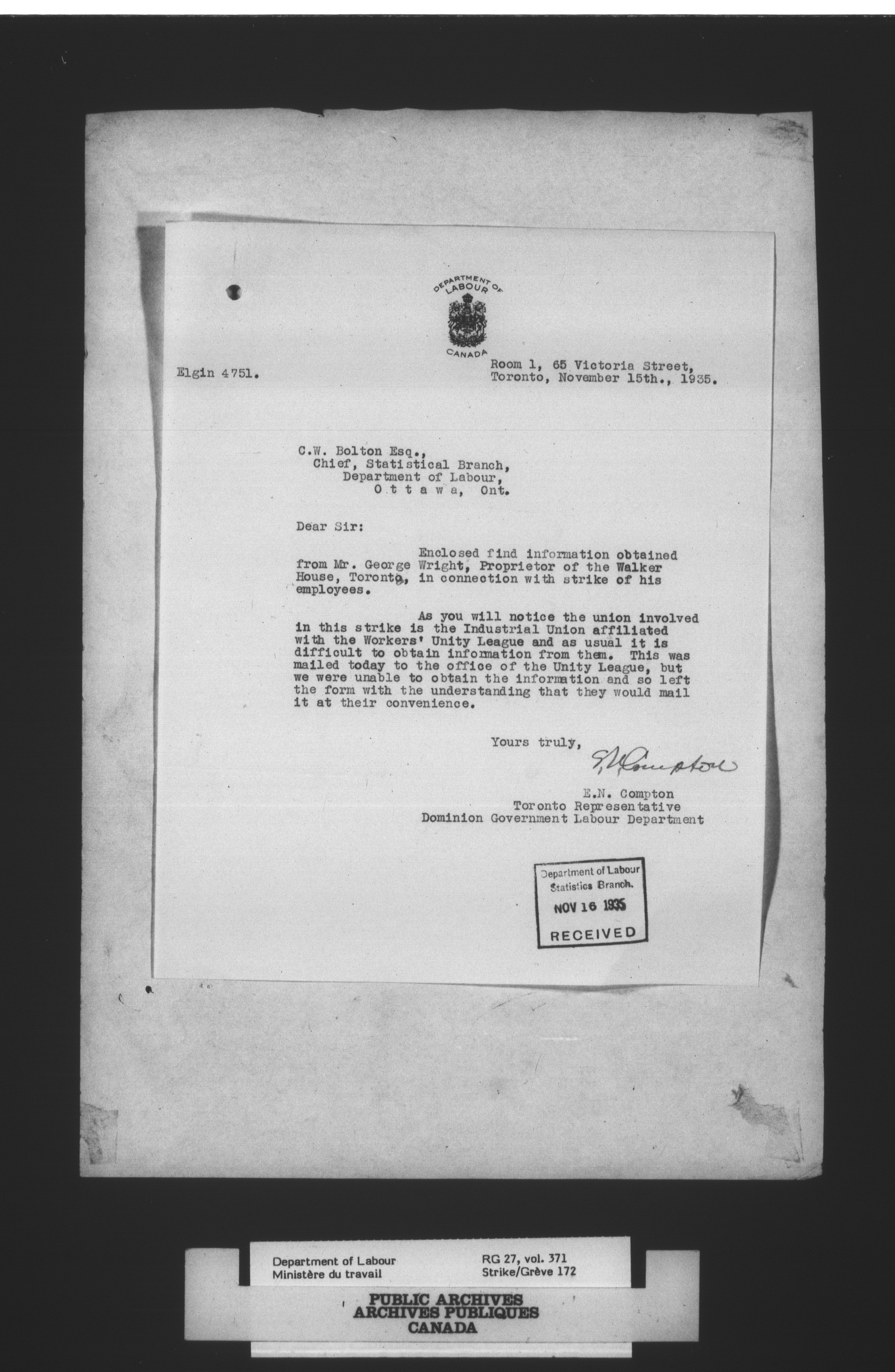 Department of Labour, Economics and Research Branch : Strikes and lockout files - 2981