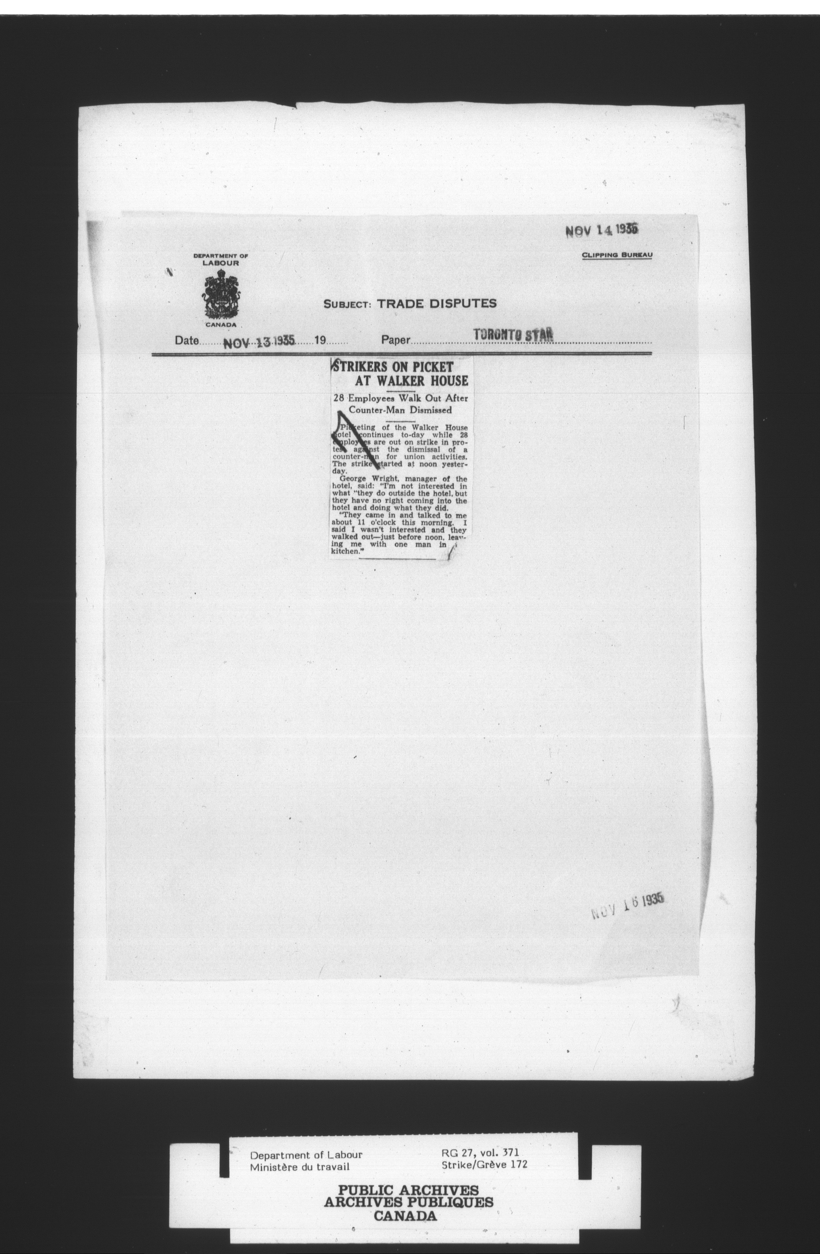 Department of Labour, Economics and Research Branch : Strikes and lockout files - 2981