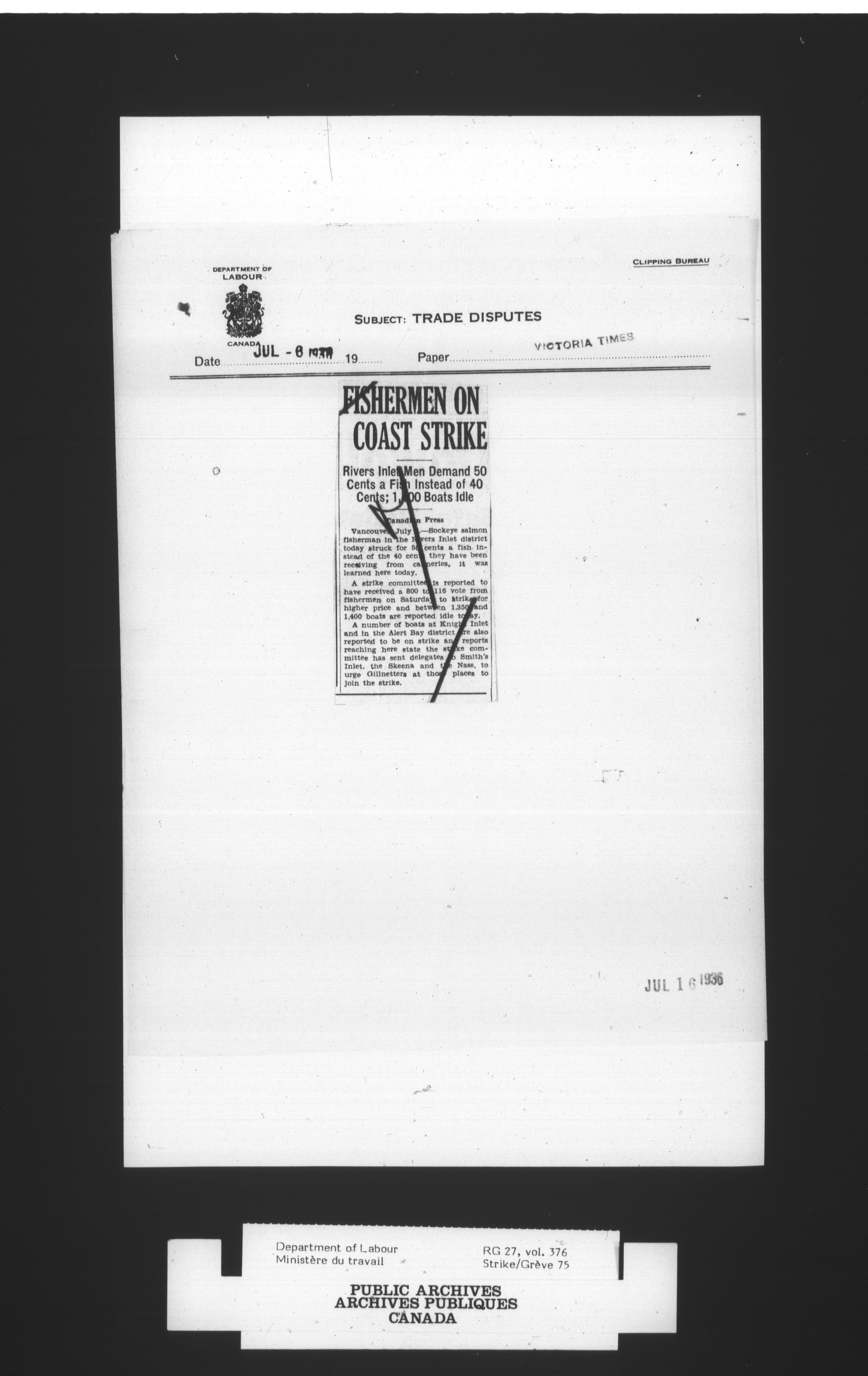 Department of Labour, Economics and Research Branch : Strikes and lockout files - 2985
