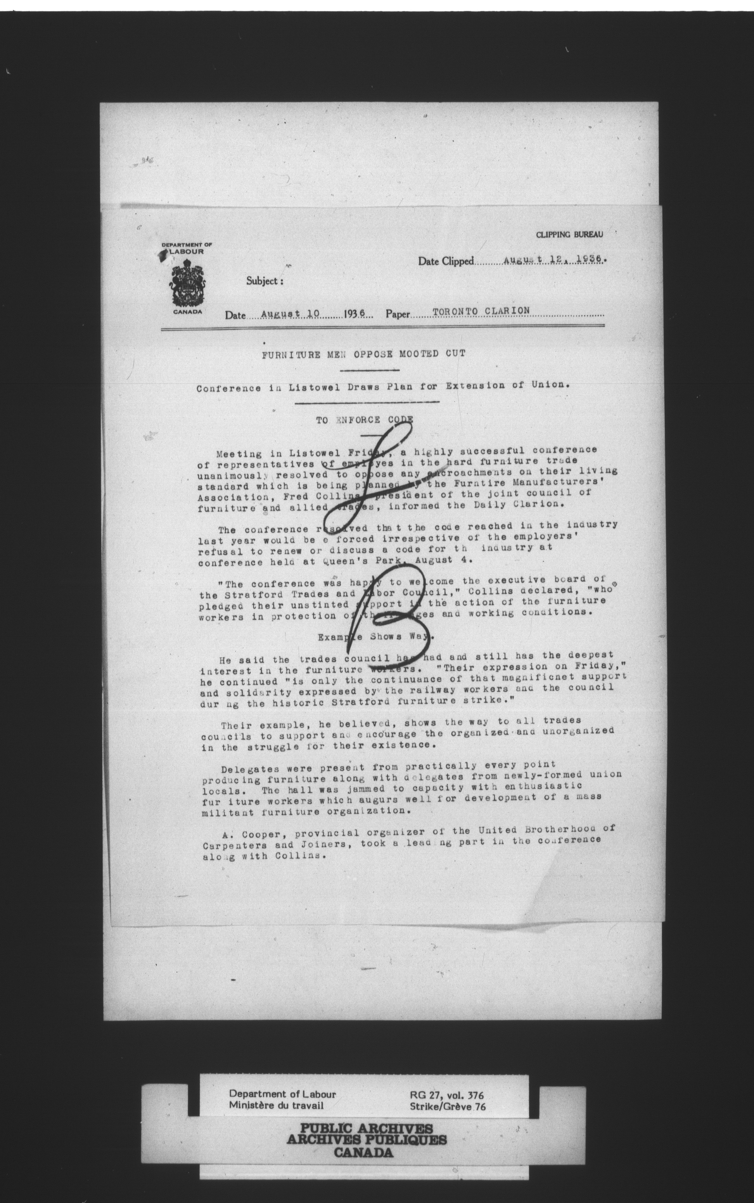 Department of Labour, Economics and Research Branch : Strikes and lockout files - 2985