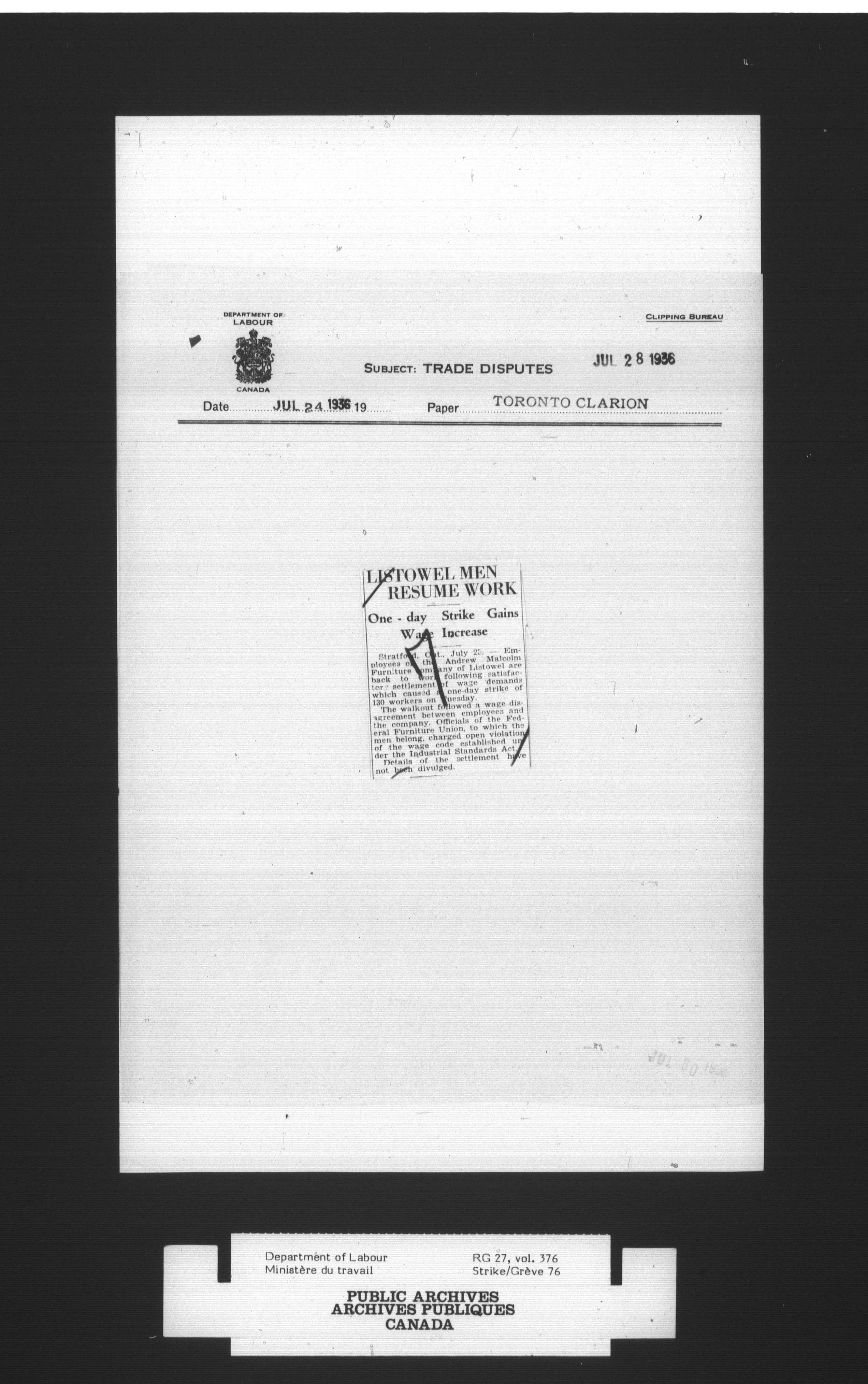 Department of Labour, Economics and Research Branch : Strikes and lockout files - 2985