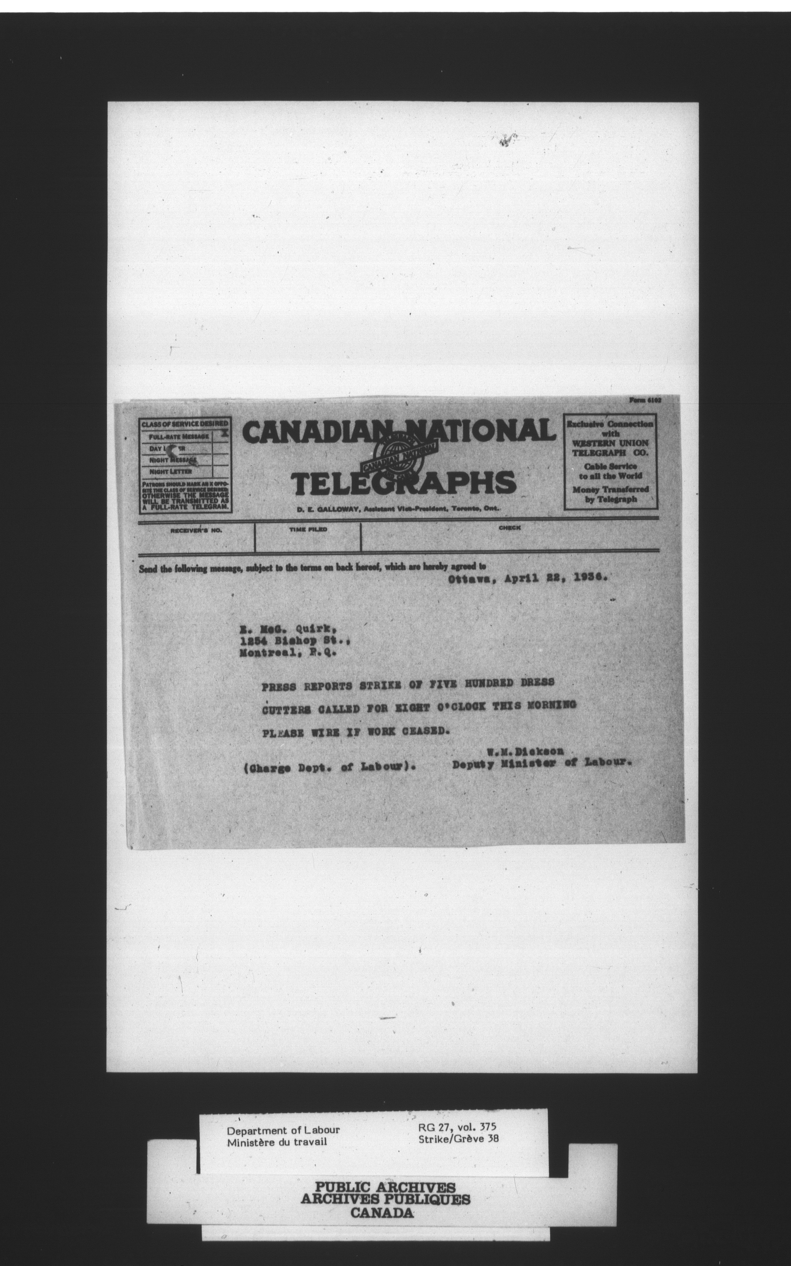 Department of Labour, Economics and Research Branch : Strikes and lockout files - 2985